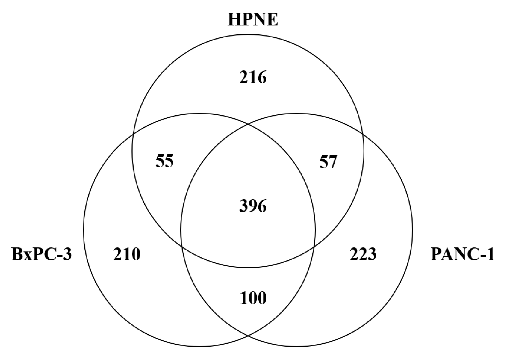 3.1. Semiquantitative Comparison of Differentially Expressed Proteins in Normal Pancreatic Ductal Cells and PC Cells