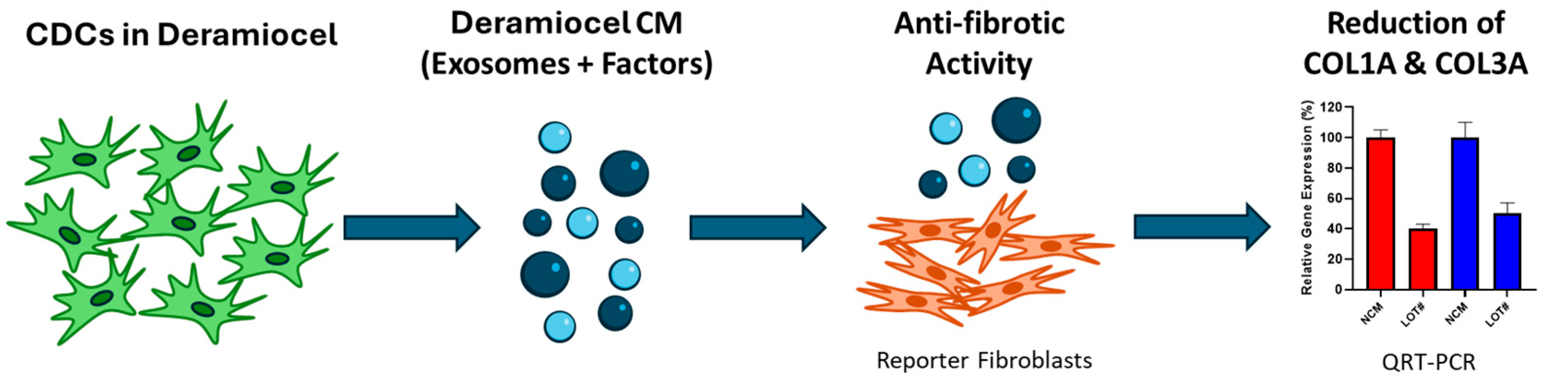 Li Y, Nice JB, Kozinova M, Adachi S, Marbán L, Elliott K, Sun M. A Novel In Vitro Potency Assay Demonstrating the Anti-Fibrotic Mechanism of Action of CDCs in Deramiocel. Biomedicines. 2025; 13(11):2652. https://doi.org/10.3390/biomedicines13112652
