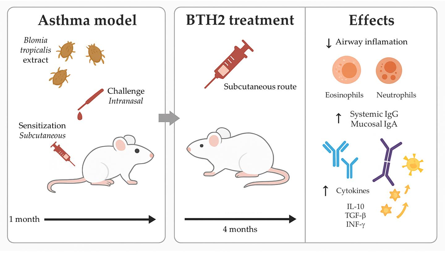da Silva ES, Fernandes AMS, Silva RC, de Souza LM, Sousa JEA, Orrico-Ferreira CM, Alcântara-Neves NM, Pacheco LGC, Pinheiro CdS. Long-Term Administration of BTH2 Hypoallergenic Vaccine Candidate Induces Hallmarks of Allergen Immunotherapy in Murine Model of Blomia tropicalis-Induced Asthma. Biomedicines. 2025; 13(11):2657. https://doi.org/10.3390/biomedicines13112657