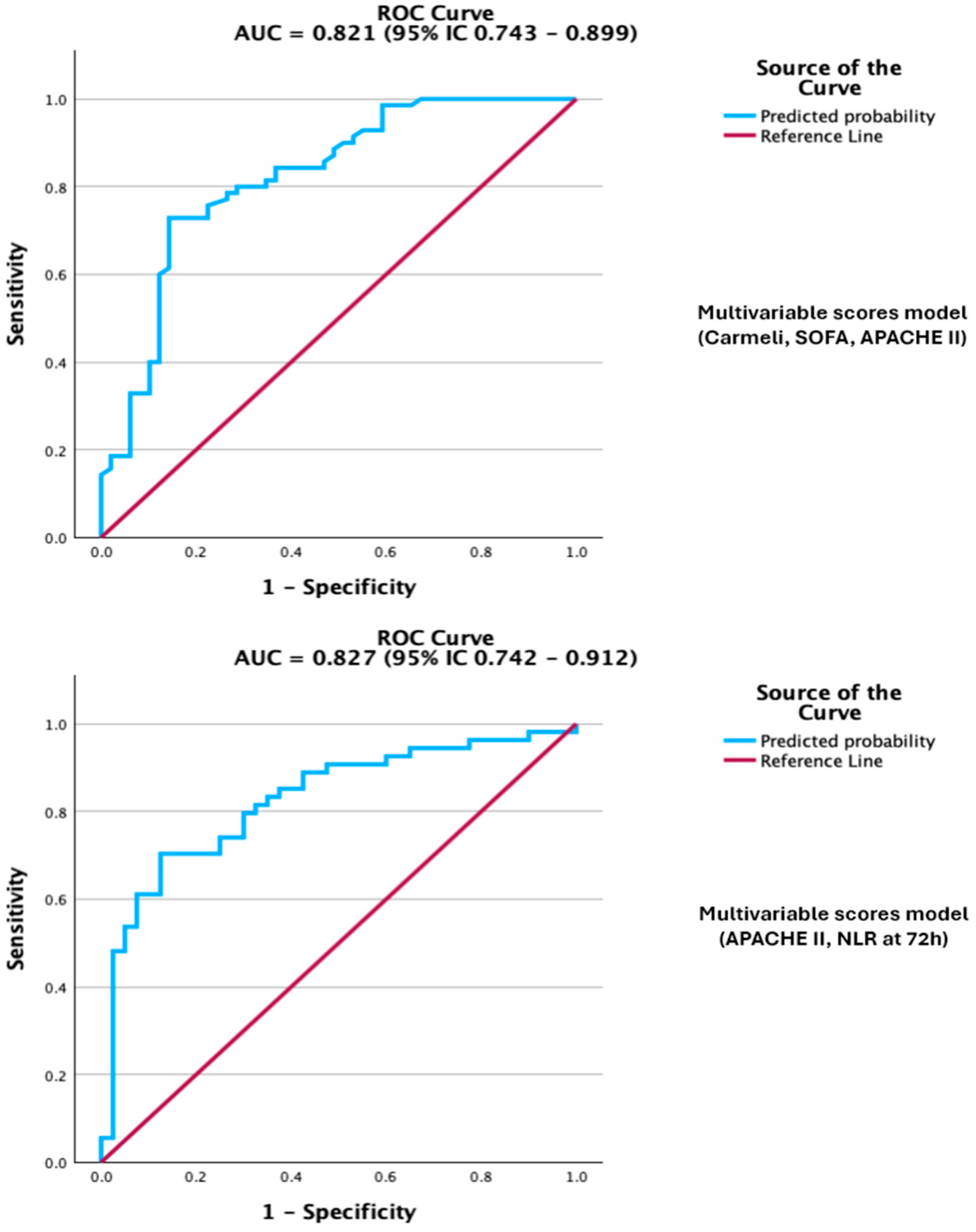 3.6. Combined Model: APACHE II and NLR at 72 h