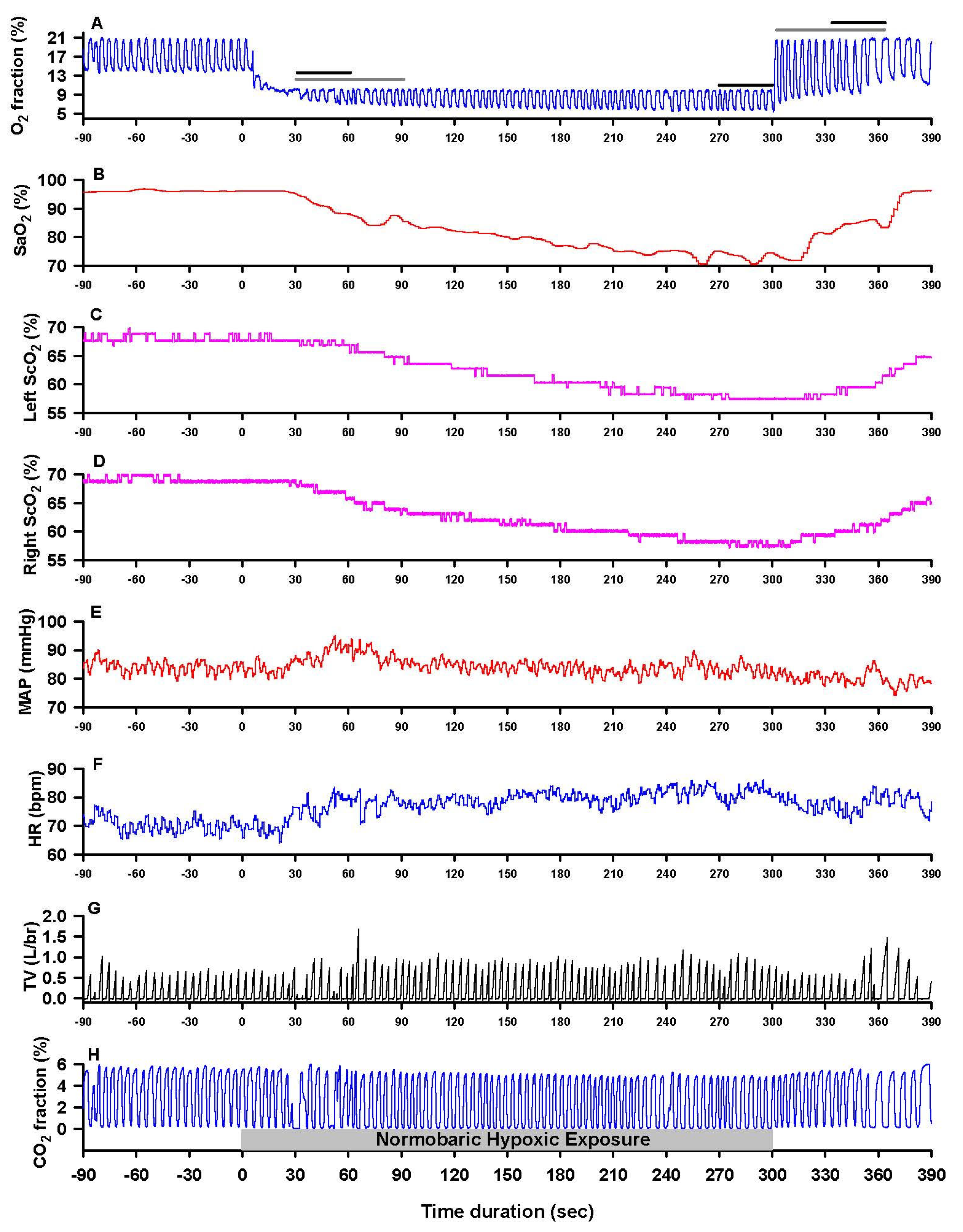 | Duration of Hypoxic Exposure (sec) | 273 ± 43 | 271 ± 37 | 0.22 | 0.825 |