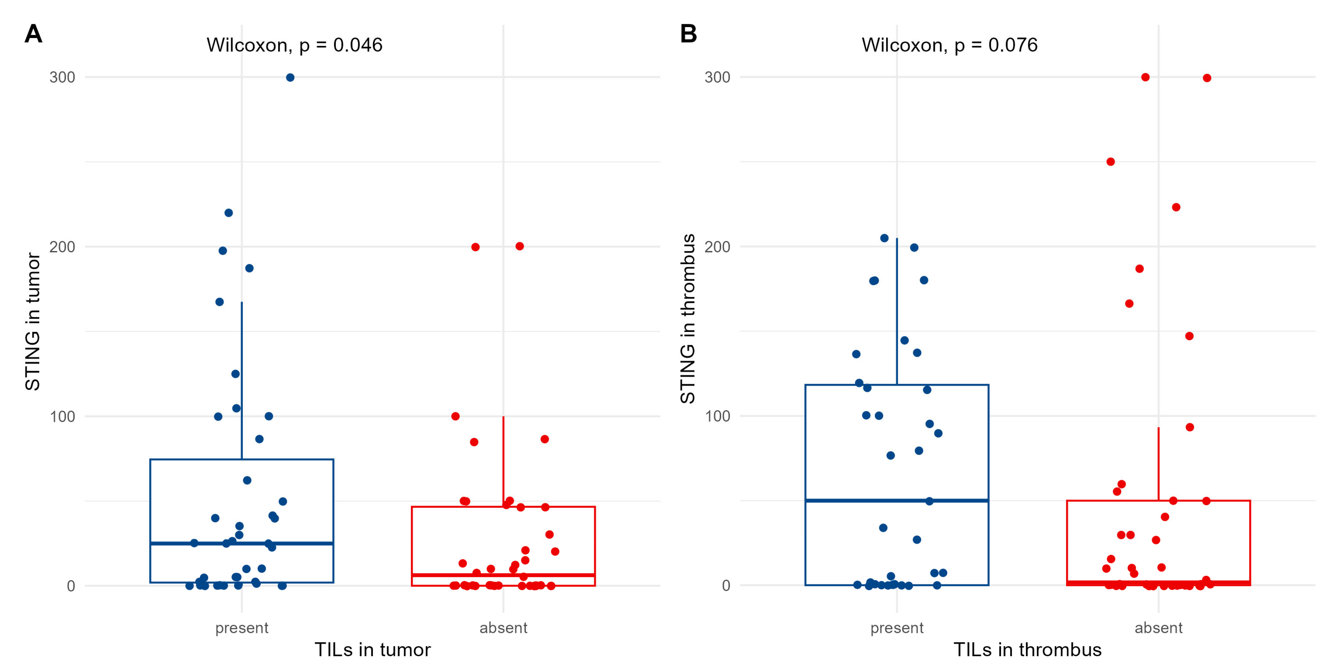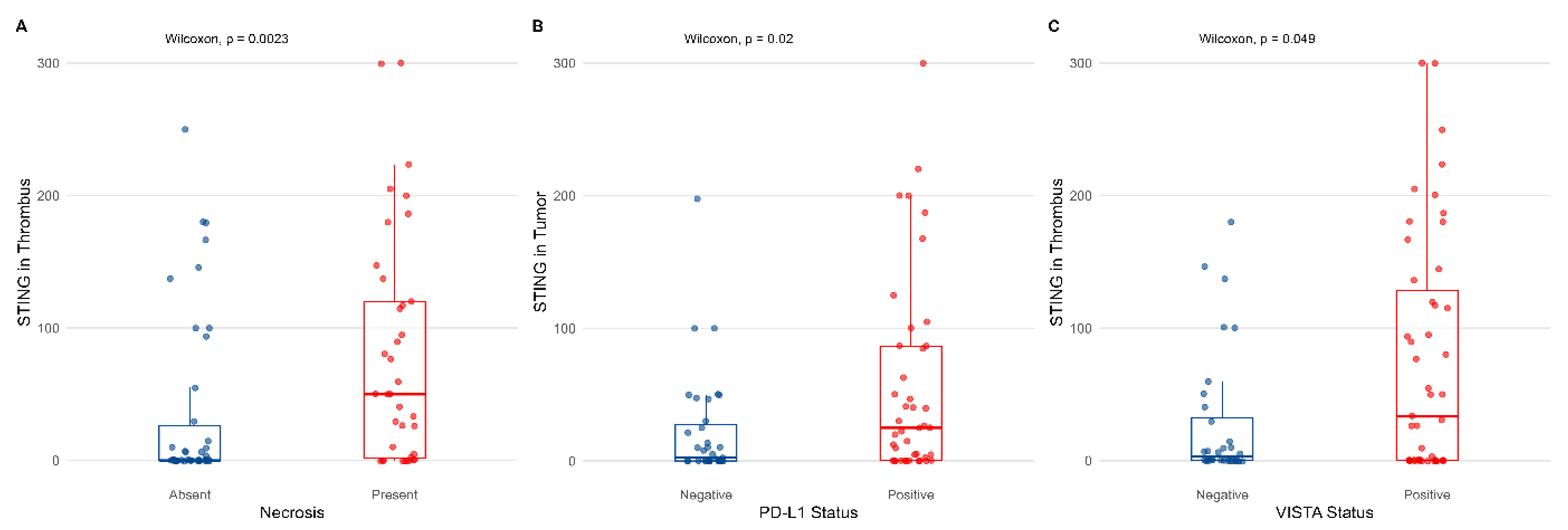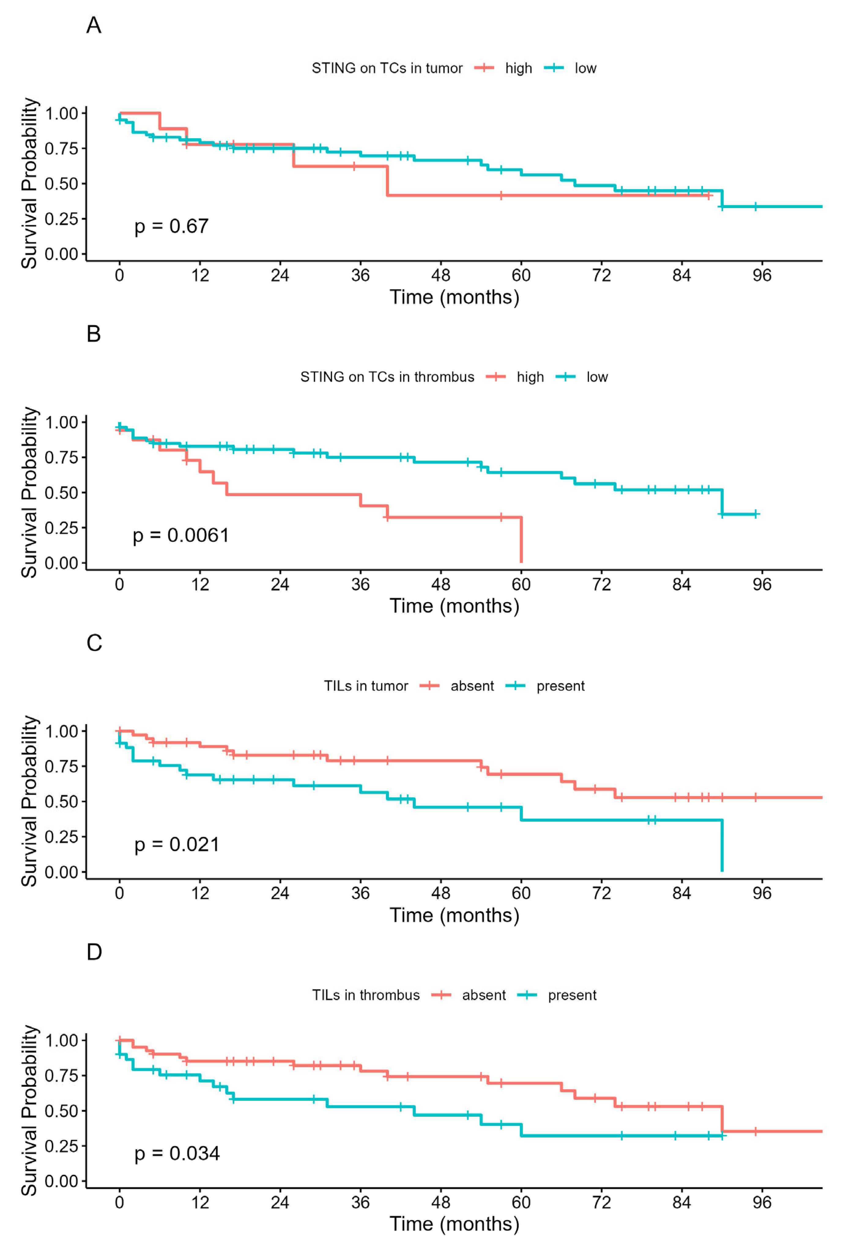 Chicago/Turabian StyleSharma, Sumit, Michał Kunc, Rafał Pęksa, Aleksandra Ciarka, Weronika Łyzińska, Le Qu, Piotr Radziszewski, and Łukasz Zapała. 2025. "Increased Immunohistochemical Expression of Stimulator of Interferon Genes (STING) in Renal Cancer with Venous Tumor Thrombus Is Associated with Worse Prognosis" Biomedicines 13, no. 11: 2674. https://doi.org/10.3390/biomedicines13112674