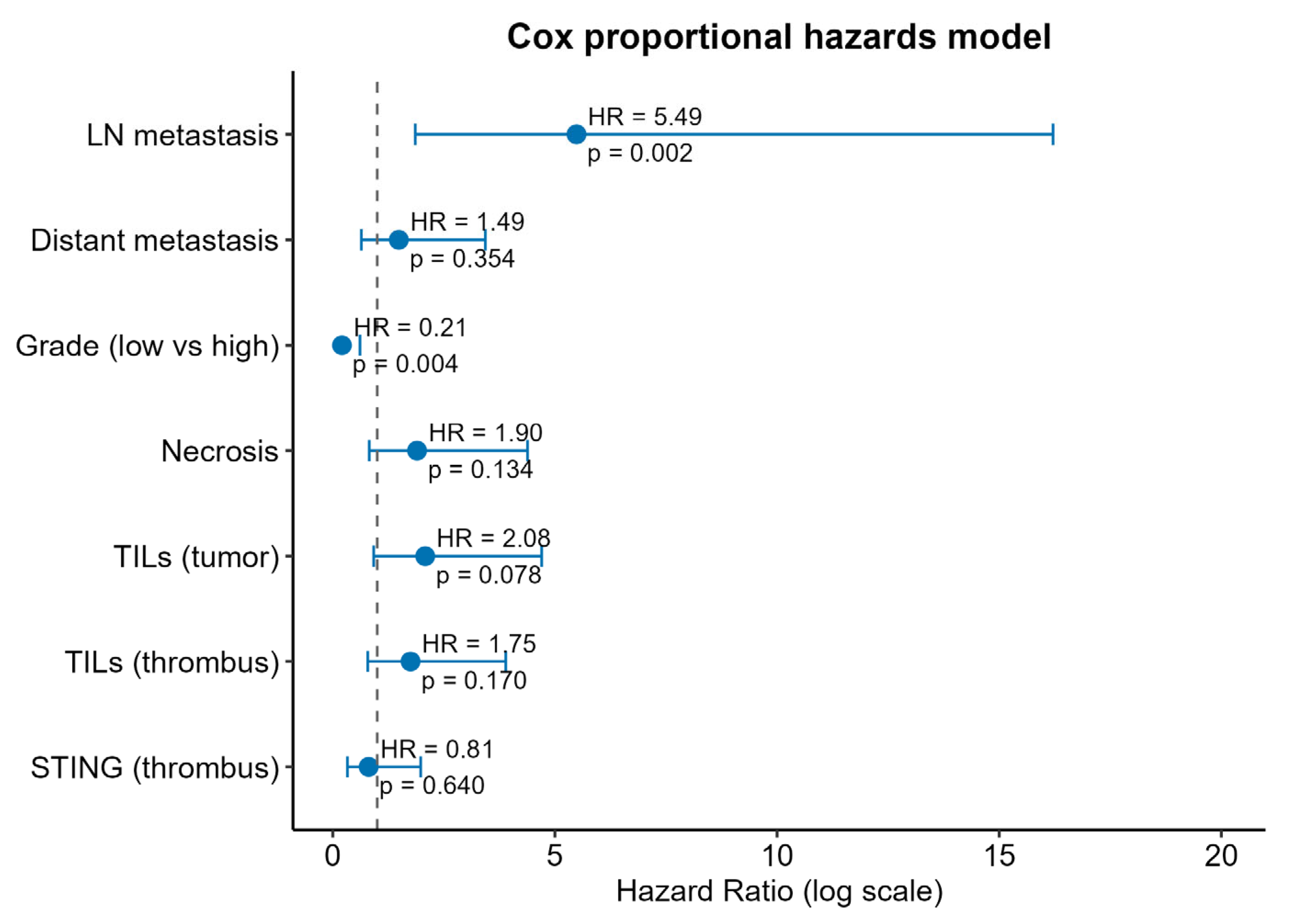 3.5. The Prognostic Value of STING and TILs in the Studied Cohort