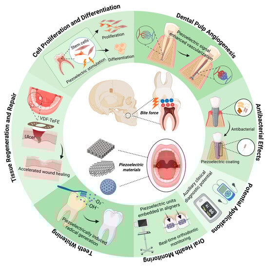 - Yang, T.; Sa, R.; Wang, F.; Chen, C.; Zheng, L. Research progress of piezoelectric materials in protecting oral health and treating oral diseases: A mini-review. Front. Bioeng. Biotechnol. 2024, 12, 1473126. [Google Scholar] [CrossRef] [PubMed]