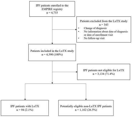 Patient selection. EMPIRE, European MultiPartner IPF Registry; IPF, idiopathic pulmonary fibrosis; LuTX, lung transplantation.