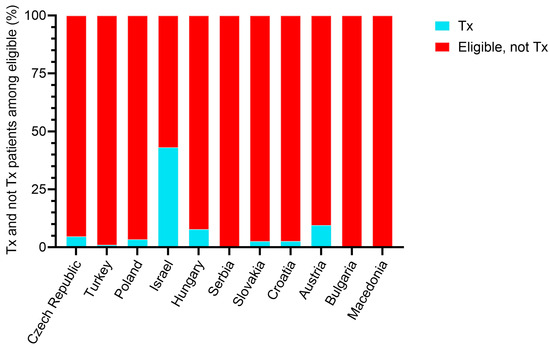 Figure 2 shows the proportion of transplanted and not transplanted patients in the subpopulation potentially eligible for LuTX. Overall, 7.5% of the eligible subjects have been transplanted. Among the EMPIRE countries, Israel had the highest transplantation rate (43.1%), followed quite far behind by Austria (9.5%) and Hungary (7.8%).
