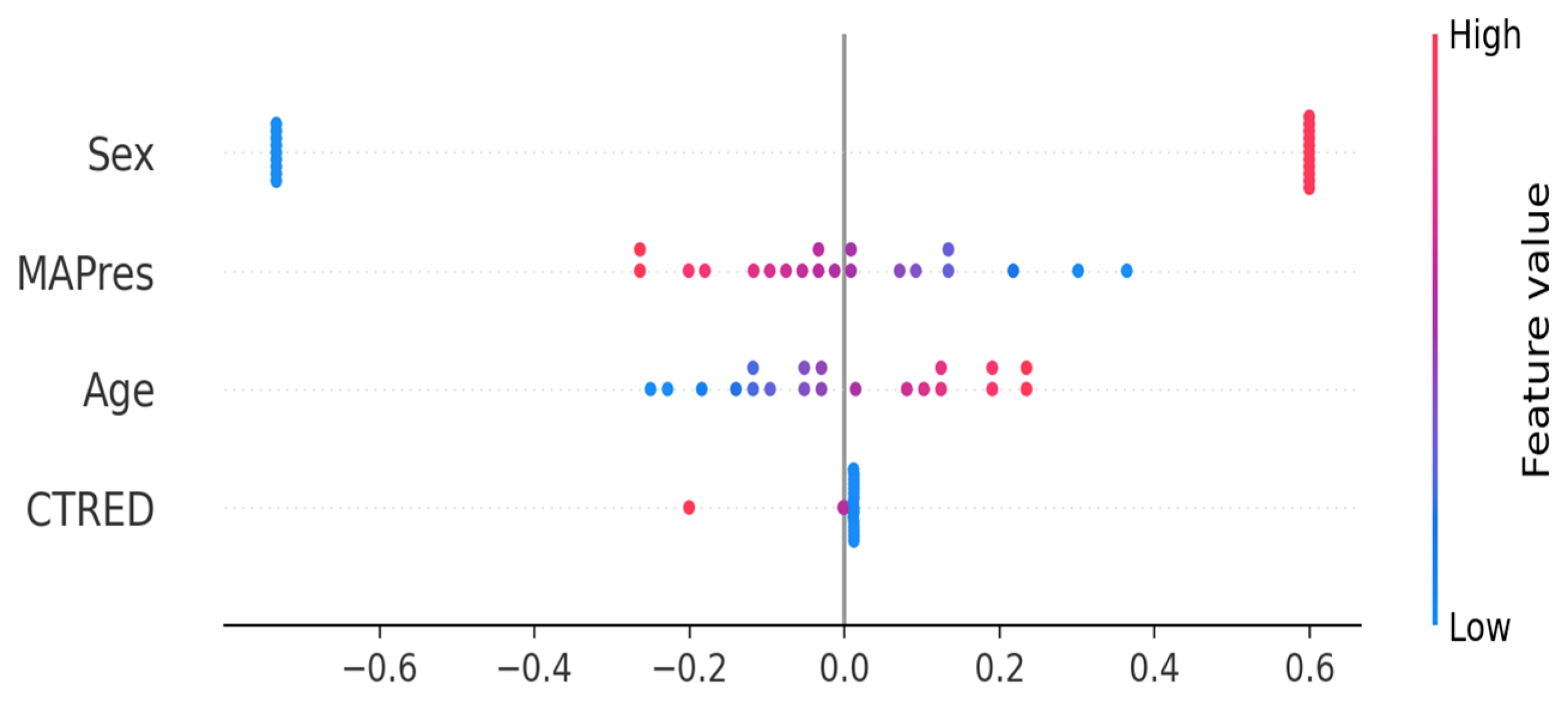Predictor selectionCTRED, MAPres, age, and sex (all clinically accessible biomarkers)[18,19,20,22,23]