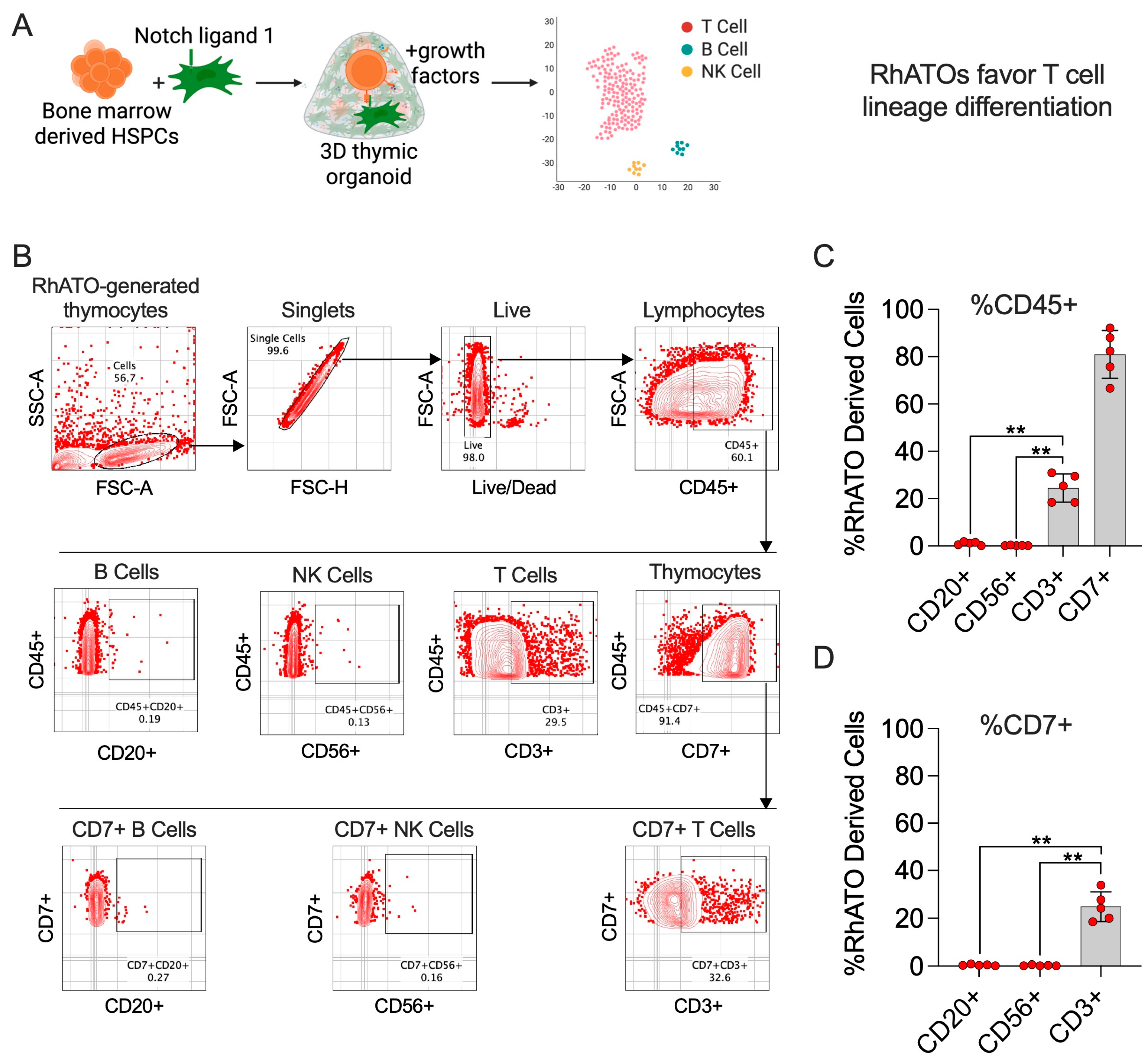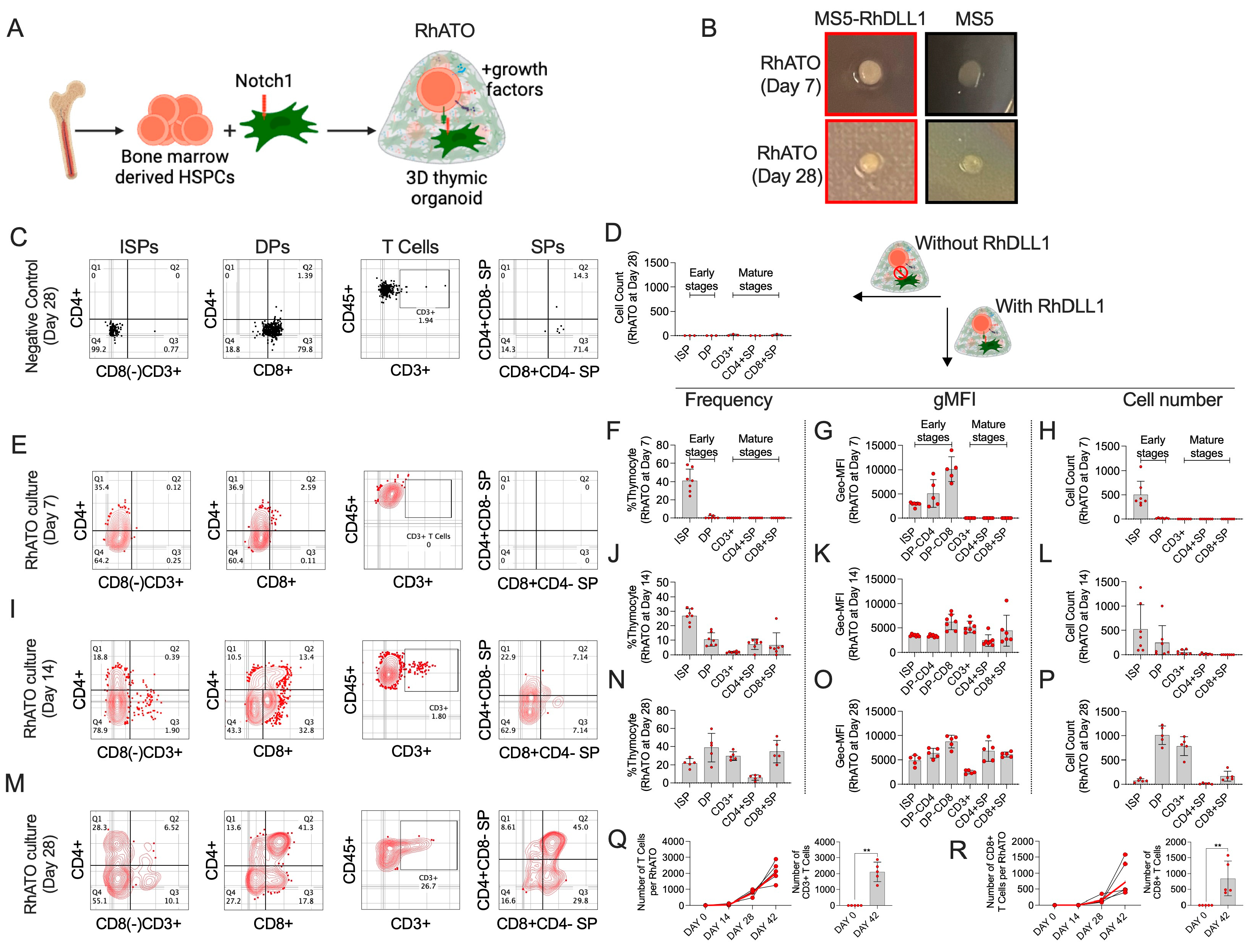 3.2. Three-Dimensional RhATO System Supported Robust T Cell Specification of Rhesus macaque HSPCs