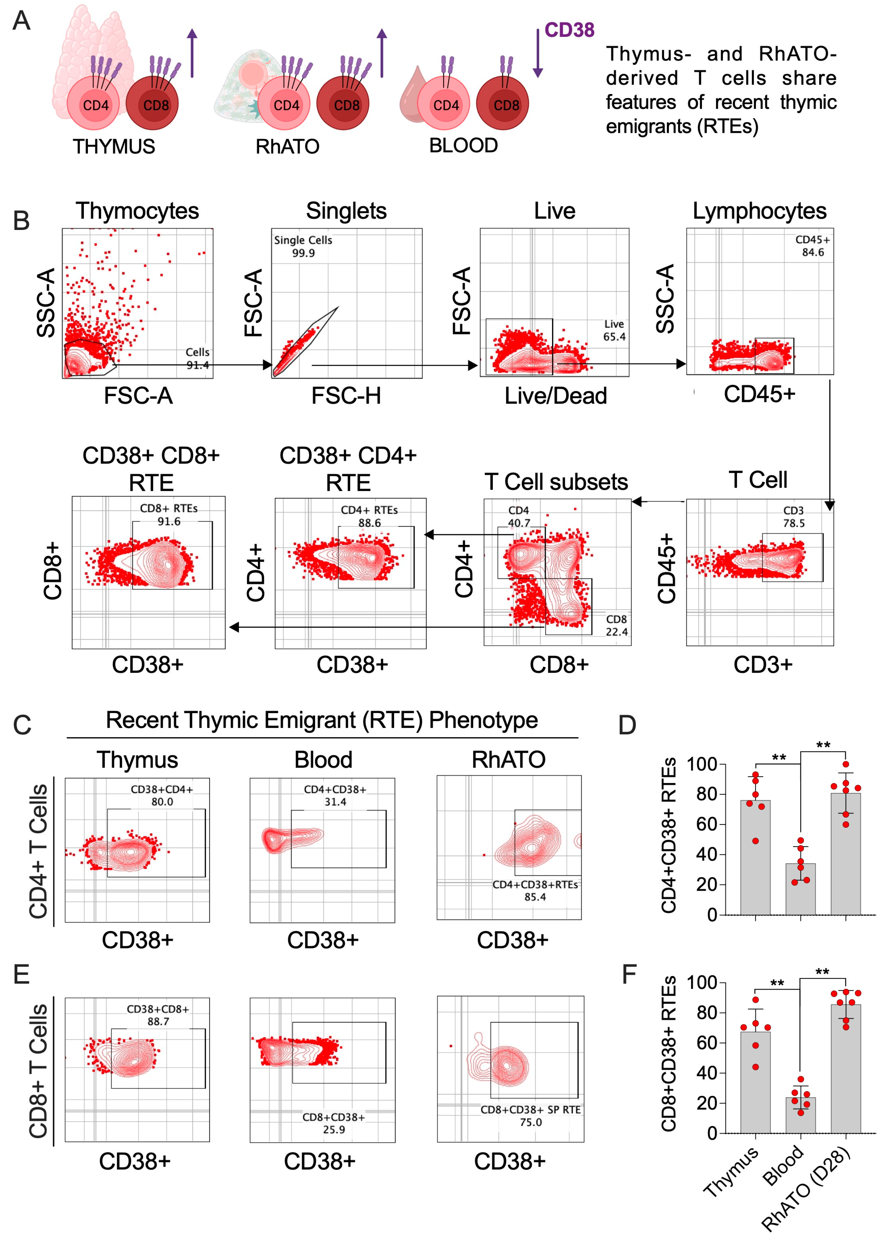 3.5. RhATO-Generated Mature T Cells Shared Features of Recent Thymic Emigrants