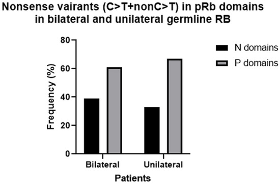 Frequency of all nonsense variants in Pocket (P) and RbN (N) domains in bilateral vs. unilateral hereditary retinoblastoma.