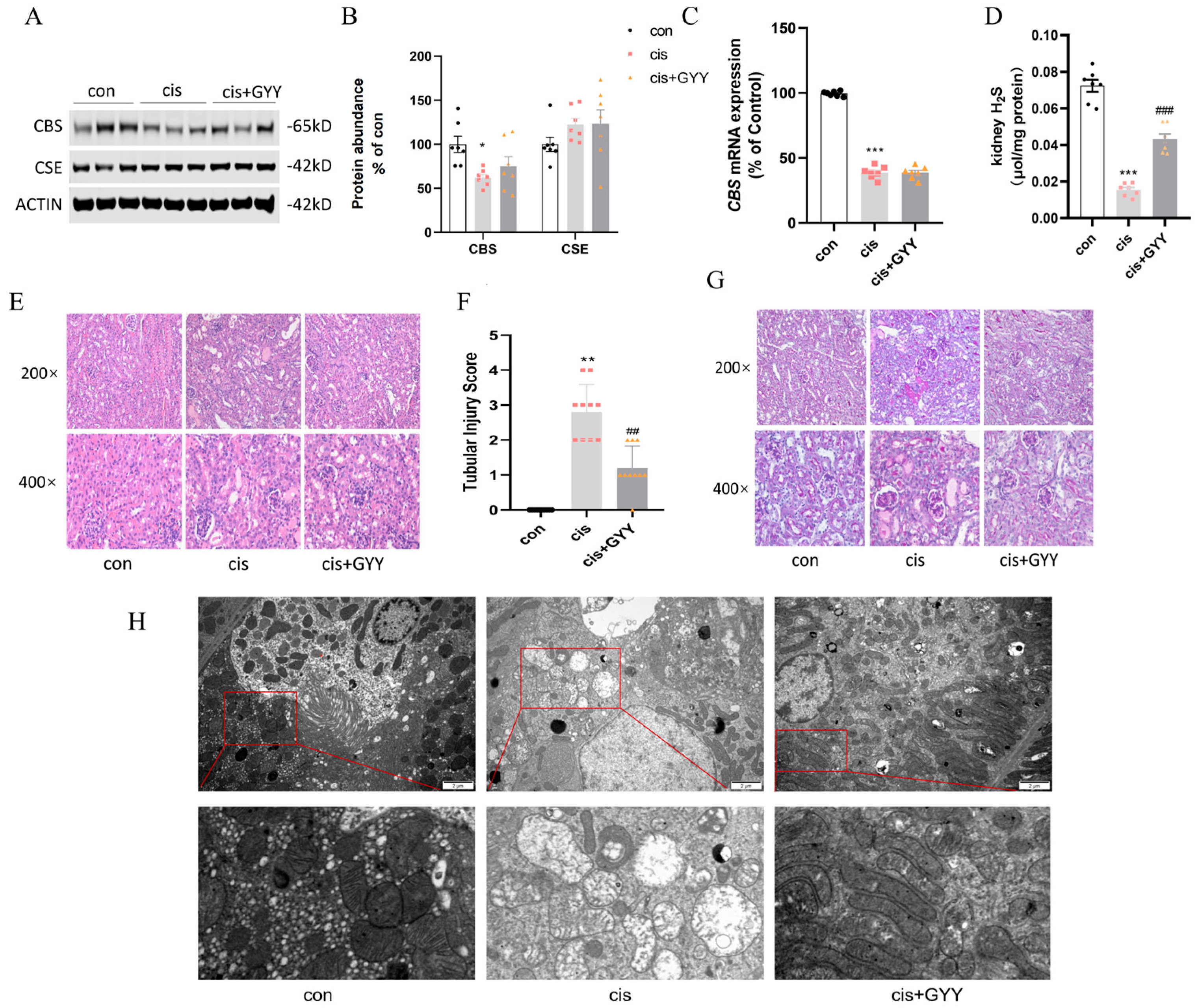 3.2. Impact of GYY4137 on H2S-Producing Enzymes in cis-AKI Mice