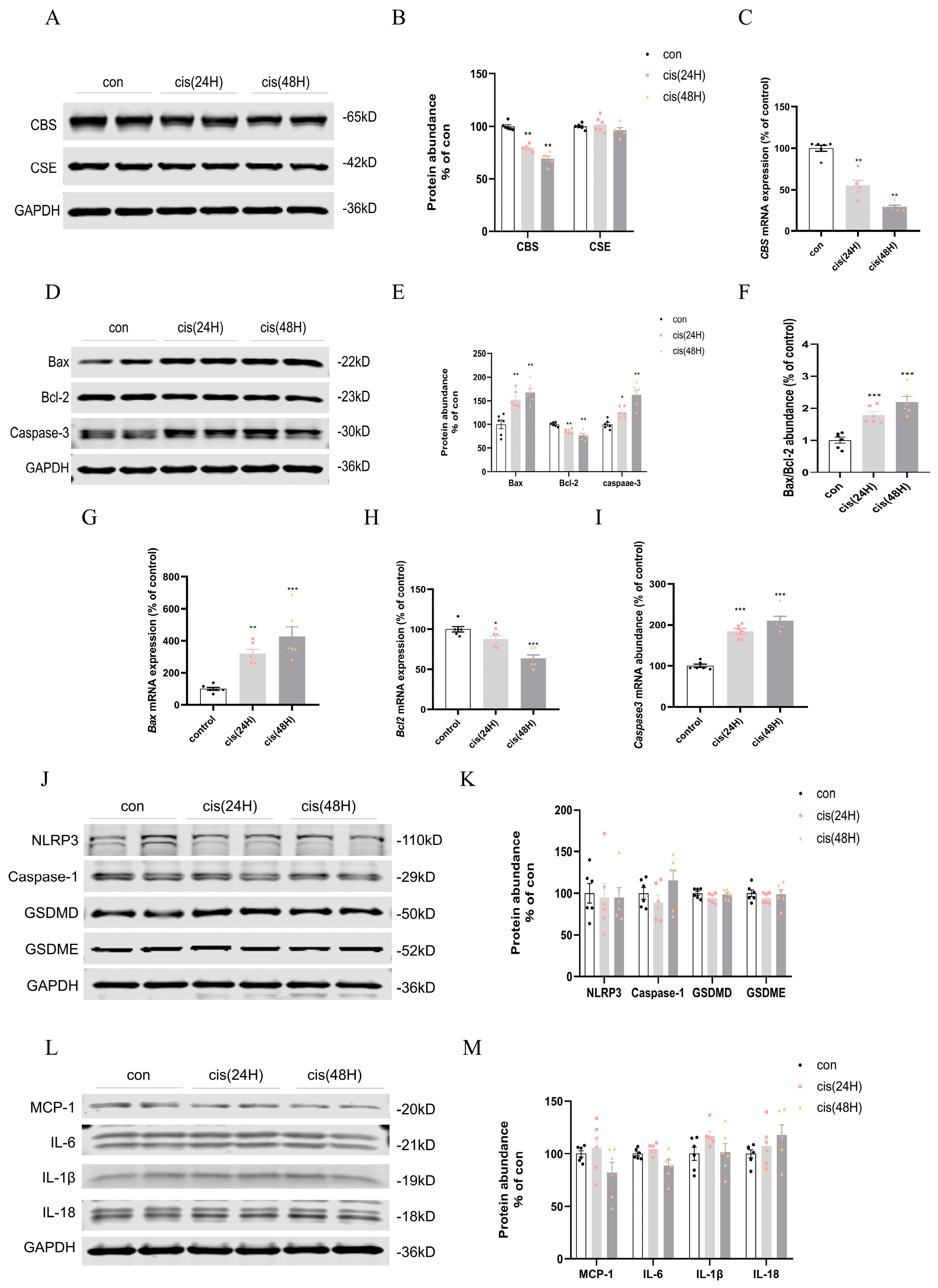 3.8. Time-Course Analysis of H2S-Producing Enzymes, Apoptosis, and Pyroptosis in cis-AKI