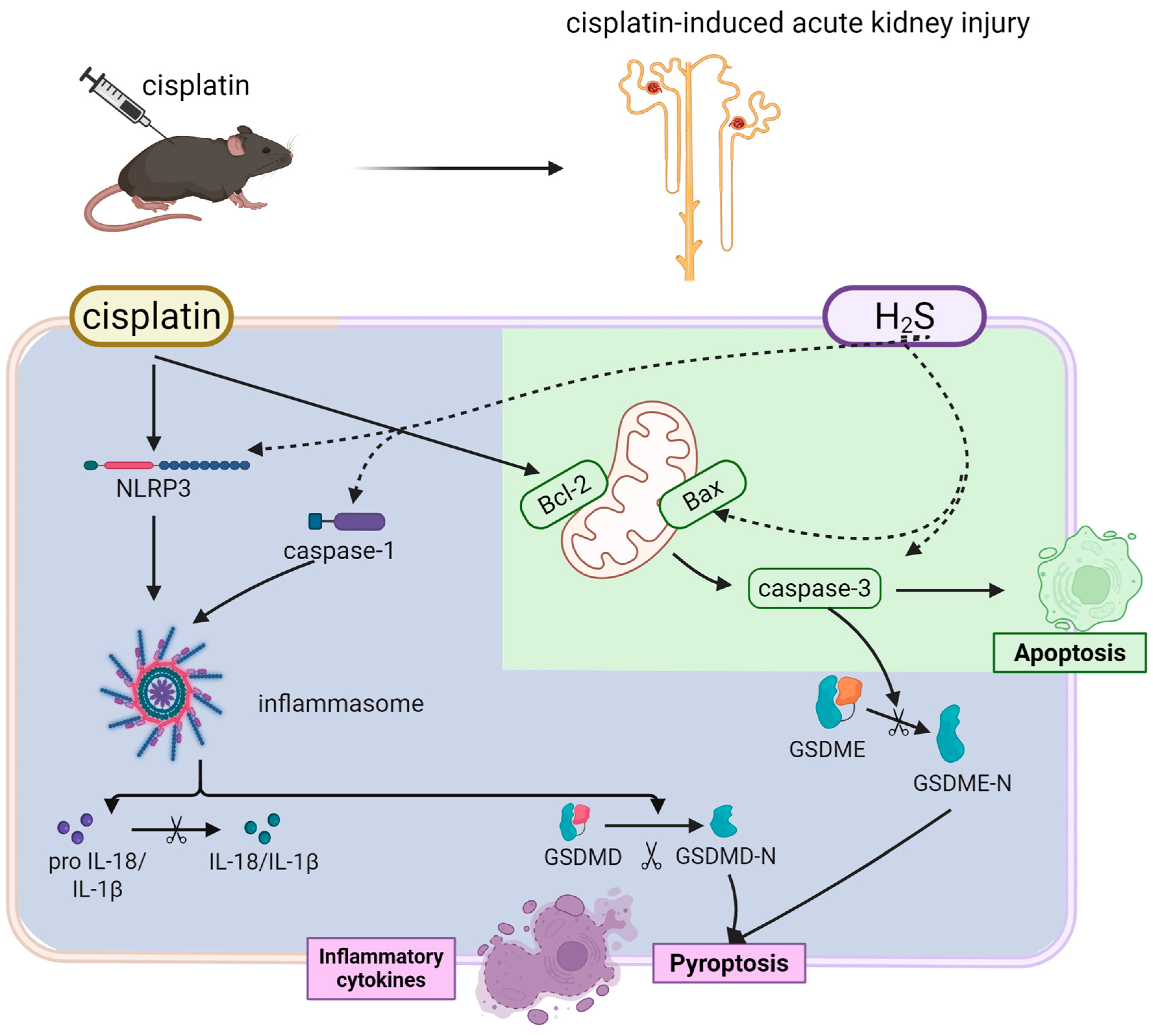 APA StyleHan, Z., Jia, Y., Yan, D., Xue, Y., Deng, T., Wang, P., Xiao, L., & Wang, X. (2025). Hydrogen Sulfide Attenuates Cisplatin-Induced Acute Kidney Injury via Dual Inhibition of Apoptosis and Pyroptosis. Biomedicines, 13(11), 2696. https://doi.org/10.3390/biomedicines13112696