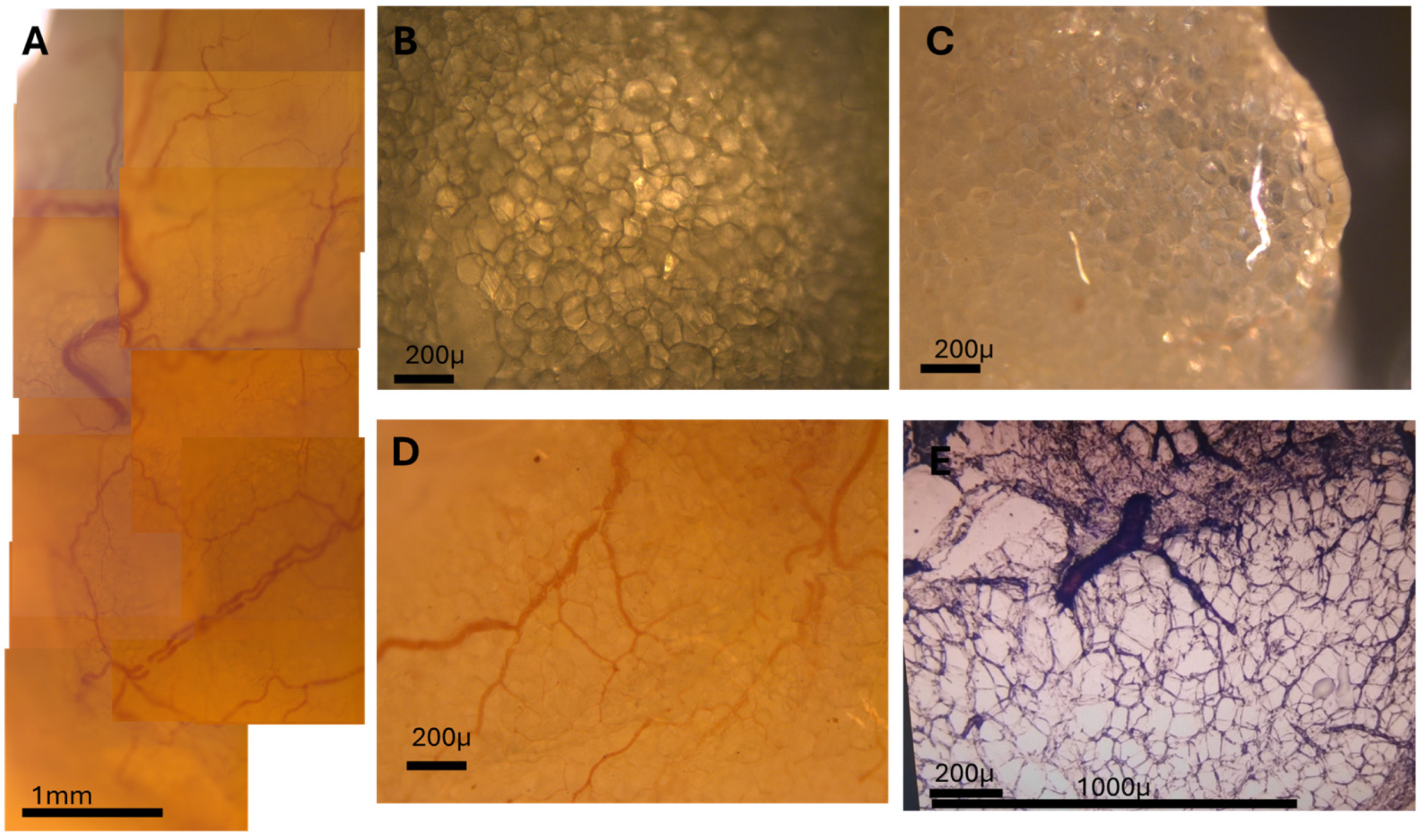 3.2. Histology Identifies Capillary Networks and Structural Detail