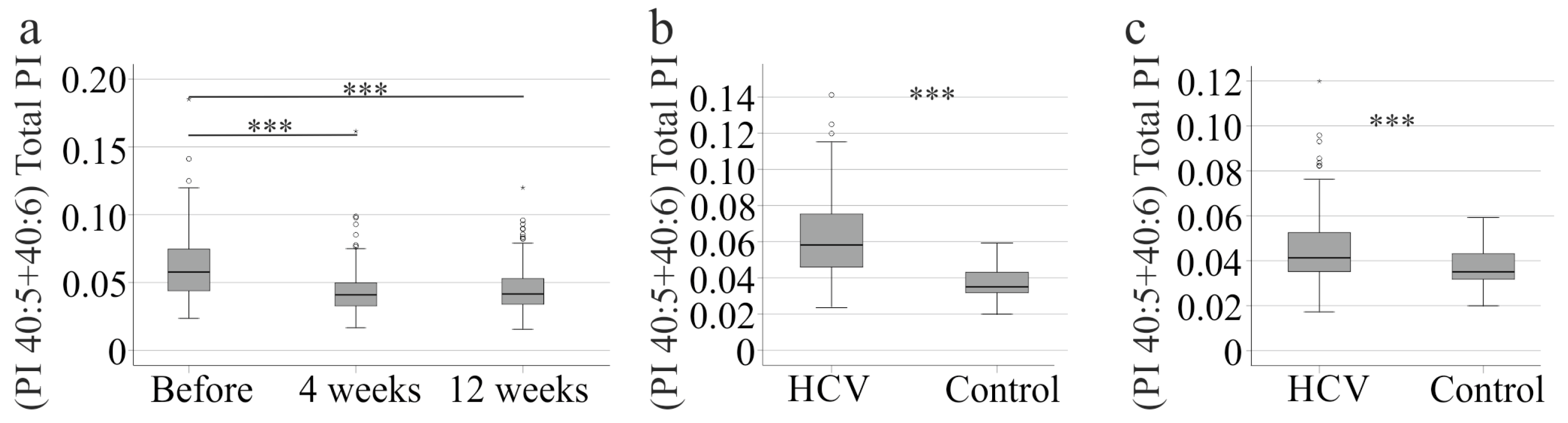 Weigand, K.; Peschel, G.; Höring, M.; Krautbauer, S.; Liebisch, G.; Müller, M.; Buechler, C. Effect of Hepatitis C Virus Genotype, Cirrhosis, and Viral Cure on Serum Phosphatidylinositol Species Profiles. Biomedicines 2025, 13, 2720. https://doi.org/10.3390/biomedicines13112720