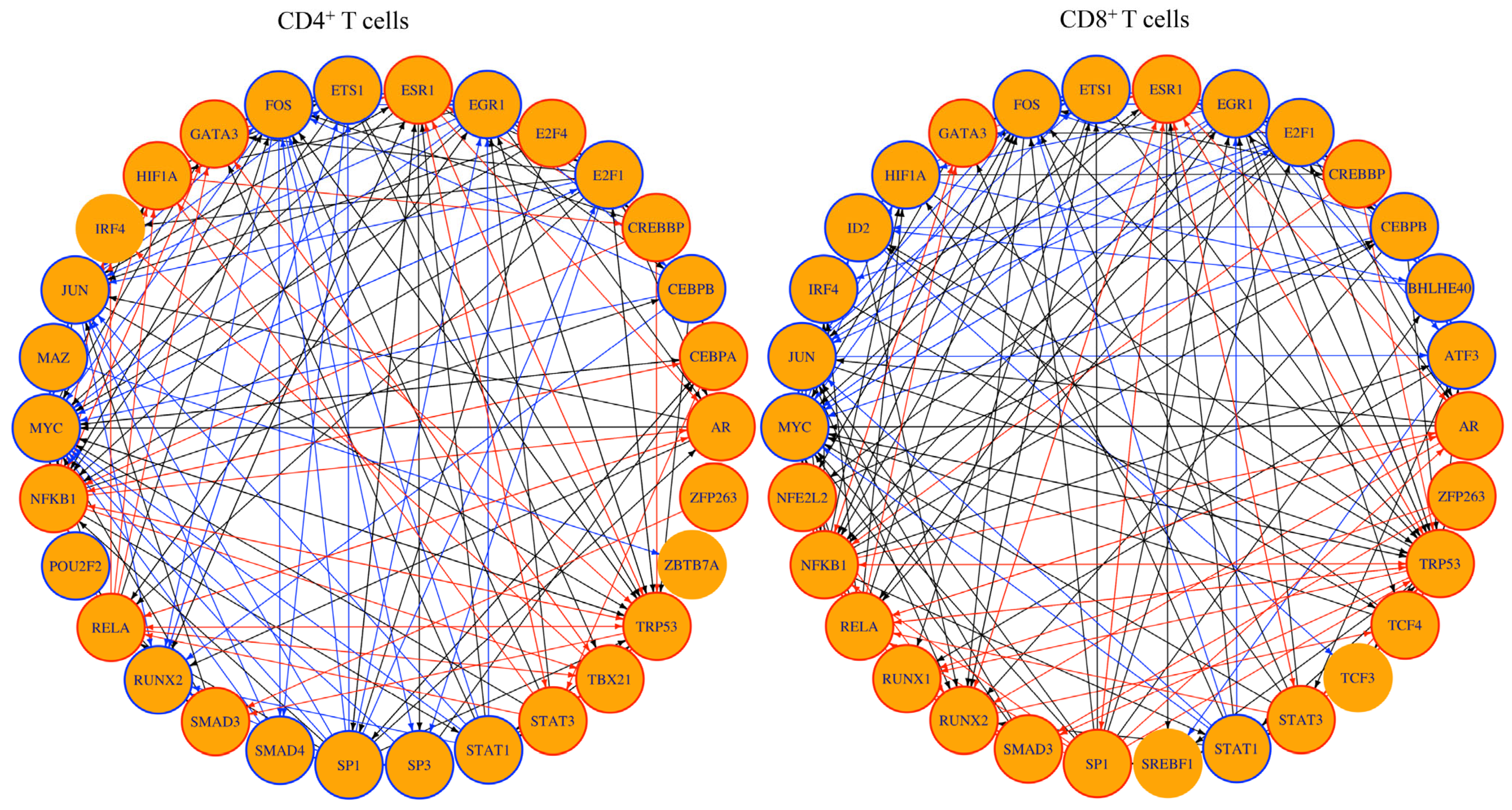 3.5. TF Network Analysis Revealed Regulatory Circuits of Importance to T cell Responses