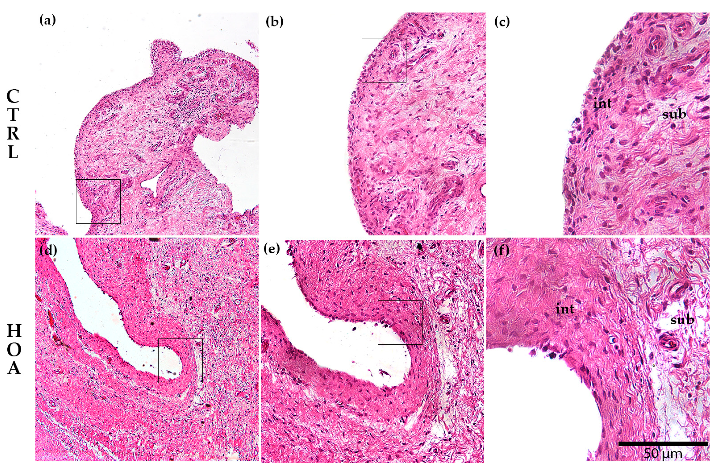 3.1. Hematoxylin and Eosin (H&E) Staining of the Synovial Membrane in Patients with Hip Osteoarthritis