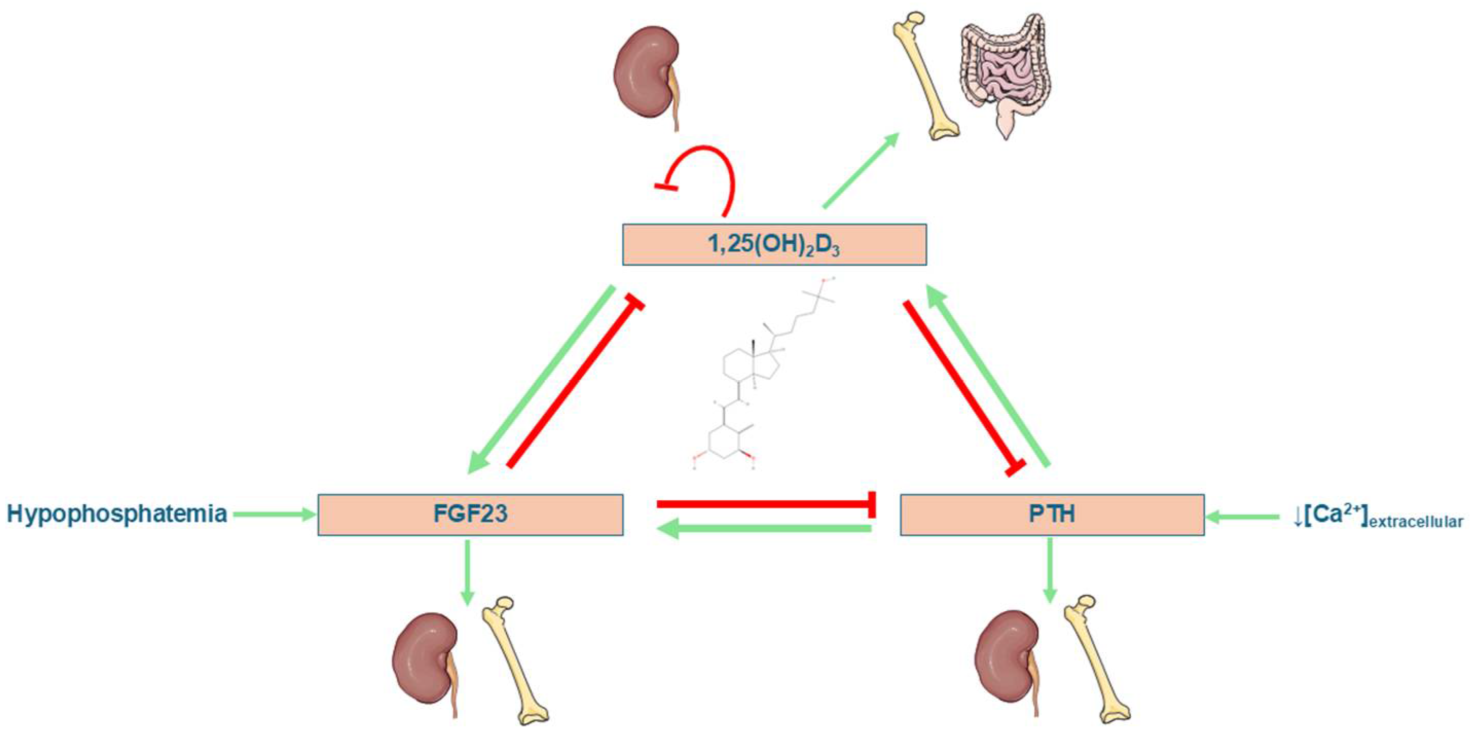 - Pike, J.W.; Lee, S.M.; Meyer, M.B. Molecular insights into mineralotropic hormone inter-regulation. Front. Endocrinol. 2023, 14, 1213361. [Google Scholar] [CrossRef]