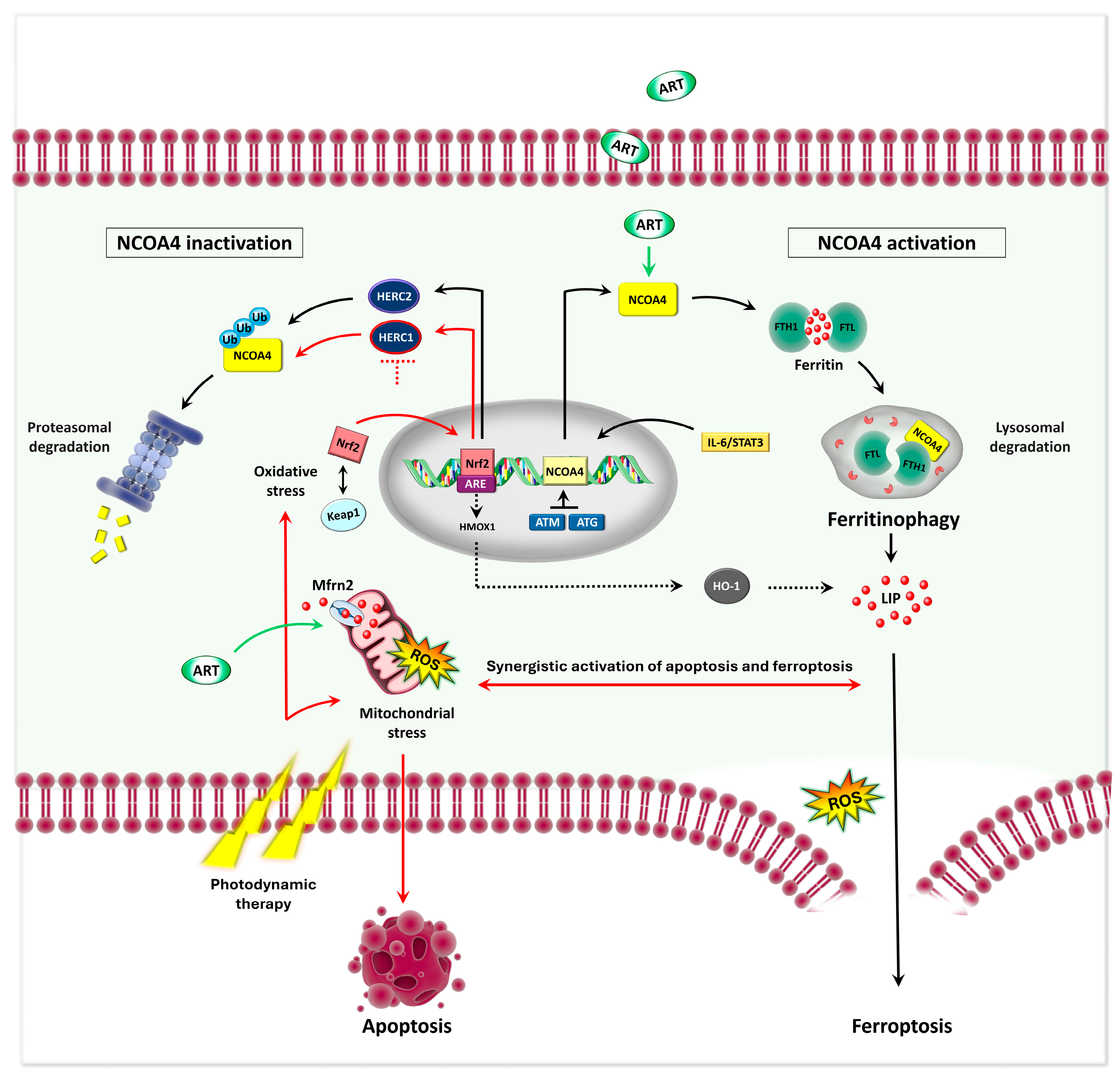 - Huang, R.; Xu, R.; Shi, J.; Yang, Z.; Zheng, J.; Wei, D. Artesunate induces ferroptosis in osteosarcoma through NCOA4-mediated ferritinophagy. FASEB J. Off. Publ. Fed. Am. Soc. Exp. Biol. 2025, 39, e70488. [Google Scholar] [CrossRef]