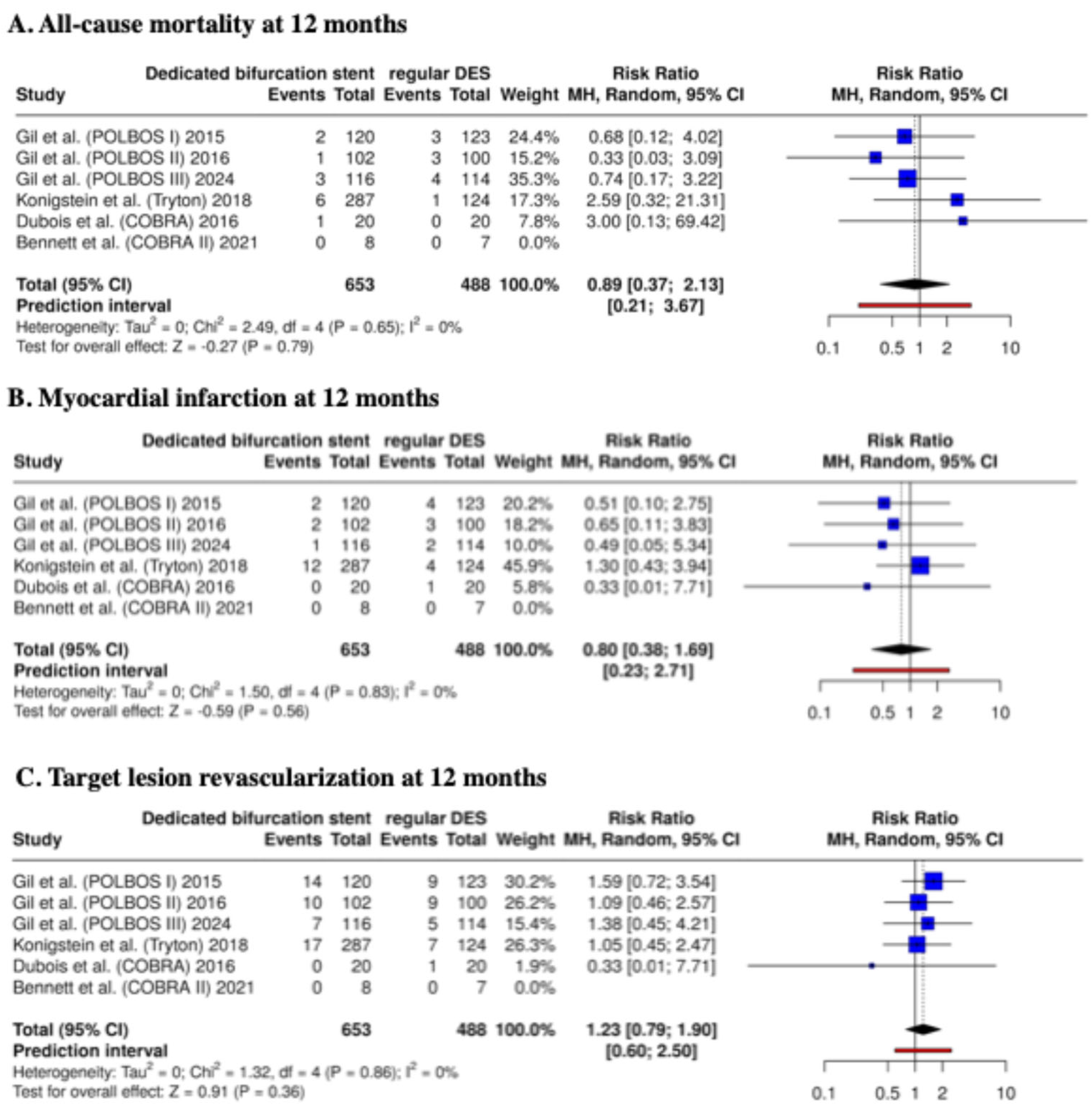 | Gil et al., 2015 [14] | 243 | 66 | 31.2 vs. 31.7 | 78.3 vs. 73.2 | 37.5 vs. 25.2 | 45.8 vs. 35 | 22.5 vs. 15 | LAD 52.5/70%, LCx 18/13%, RCA 8/2% | BiOSS Expert vs. rDES | 12 mo: MACE 13.3% vs. 12.2%; TLR 11.5% vs. 7.3% |