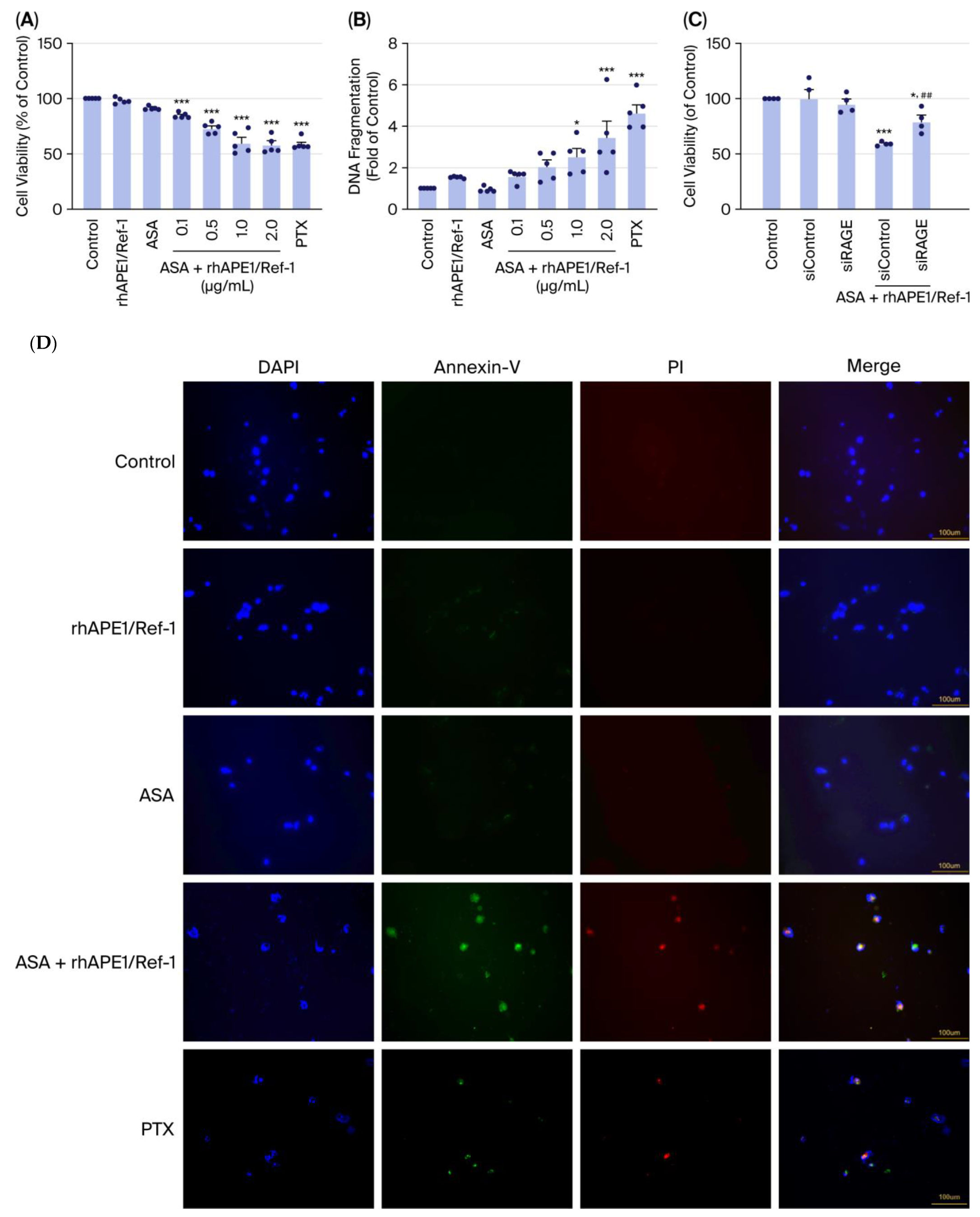 3.1. Combined Treatment with ASA and rhAPE1/Ref-1 Enhances Apoptosis in MDA-MB-231 Cells In Vitro