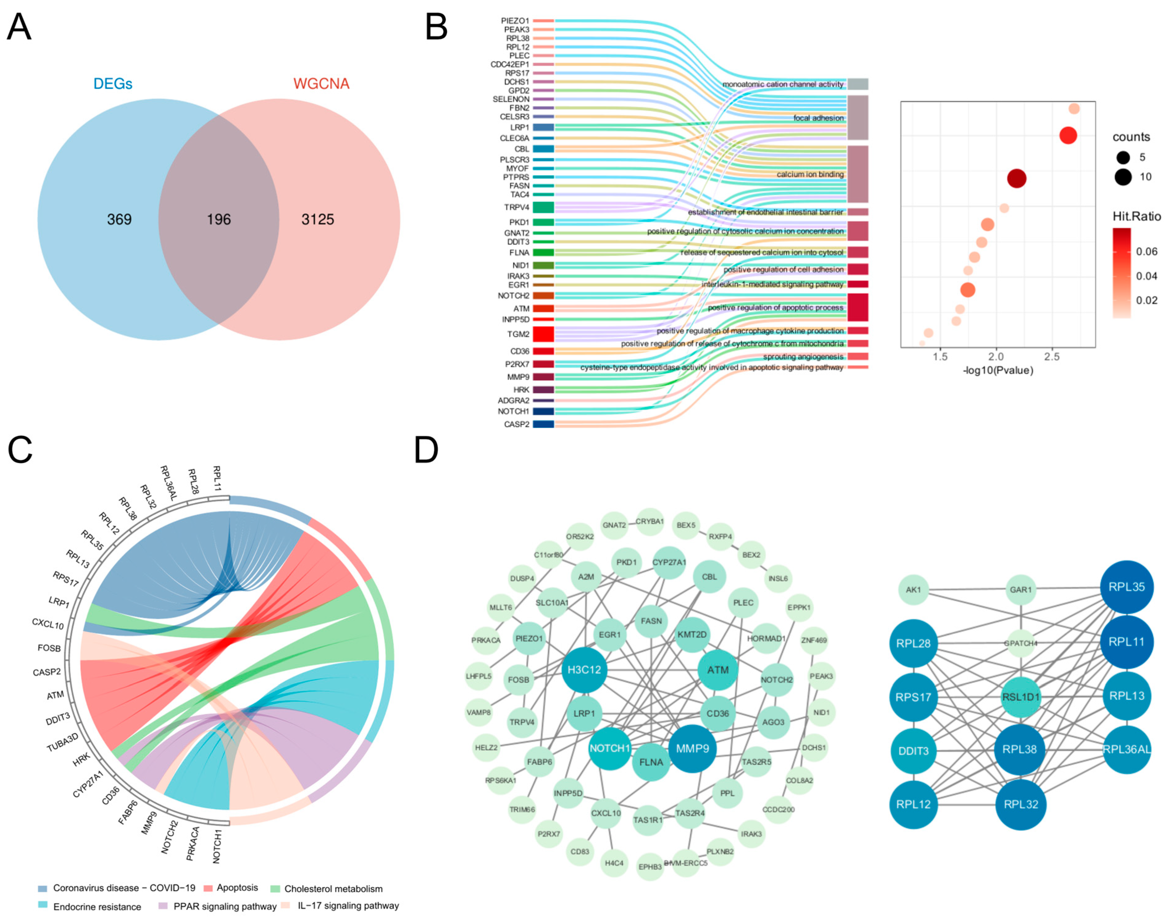 3.2. Functional Enrichment and PPI Network of DE-ORGs