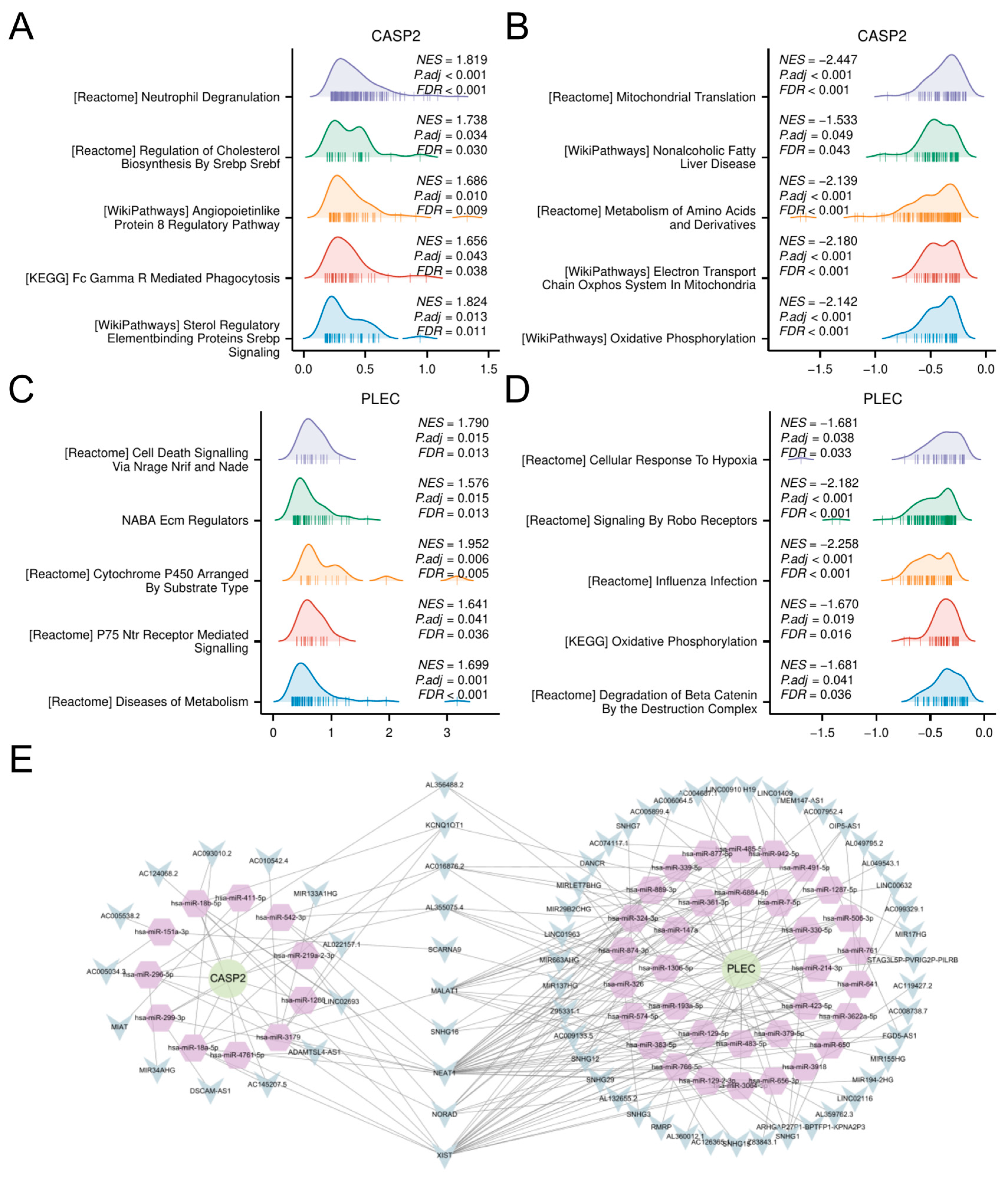 3.6. GSEA of Hub Genes and ceRNA Network