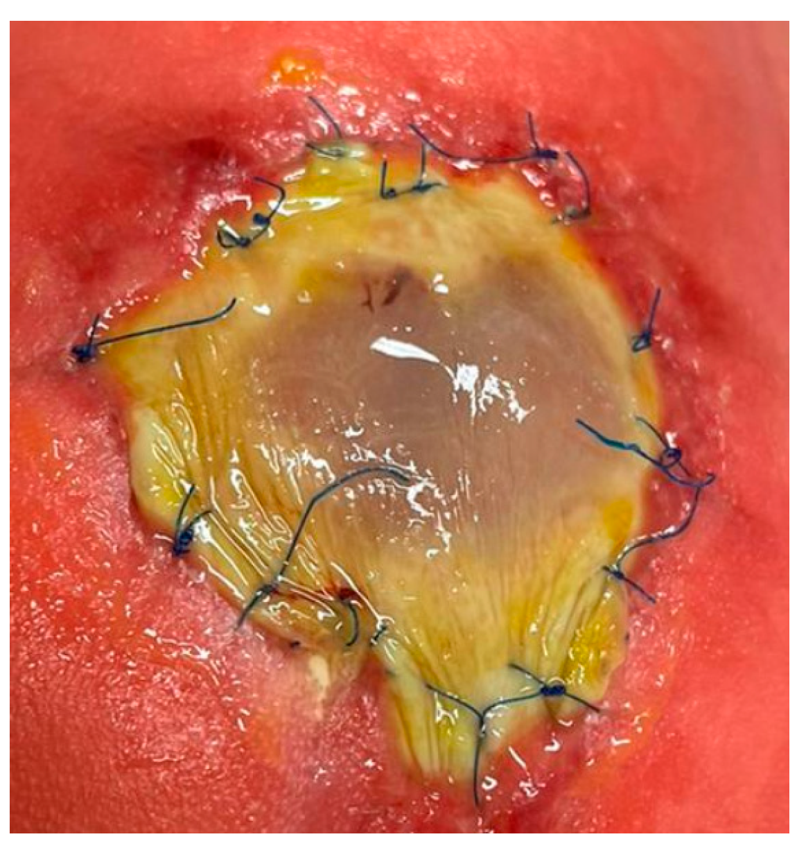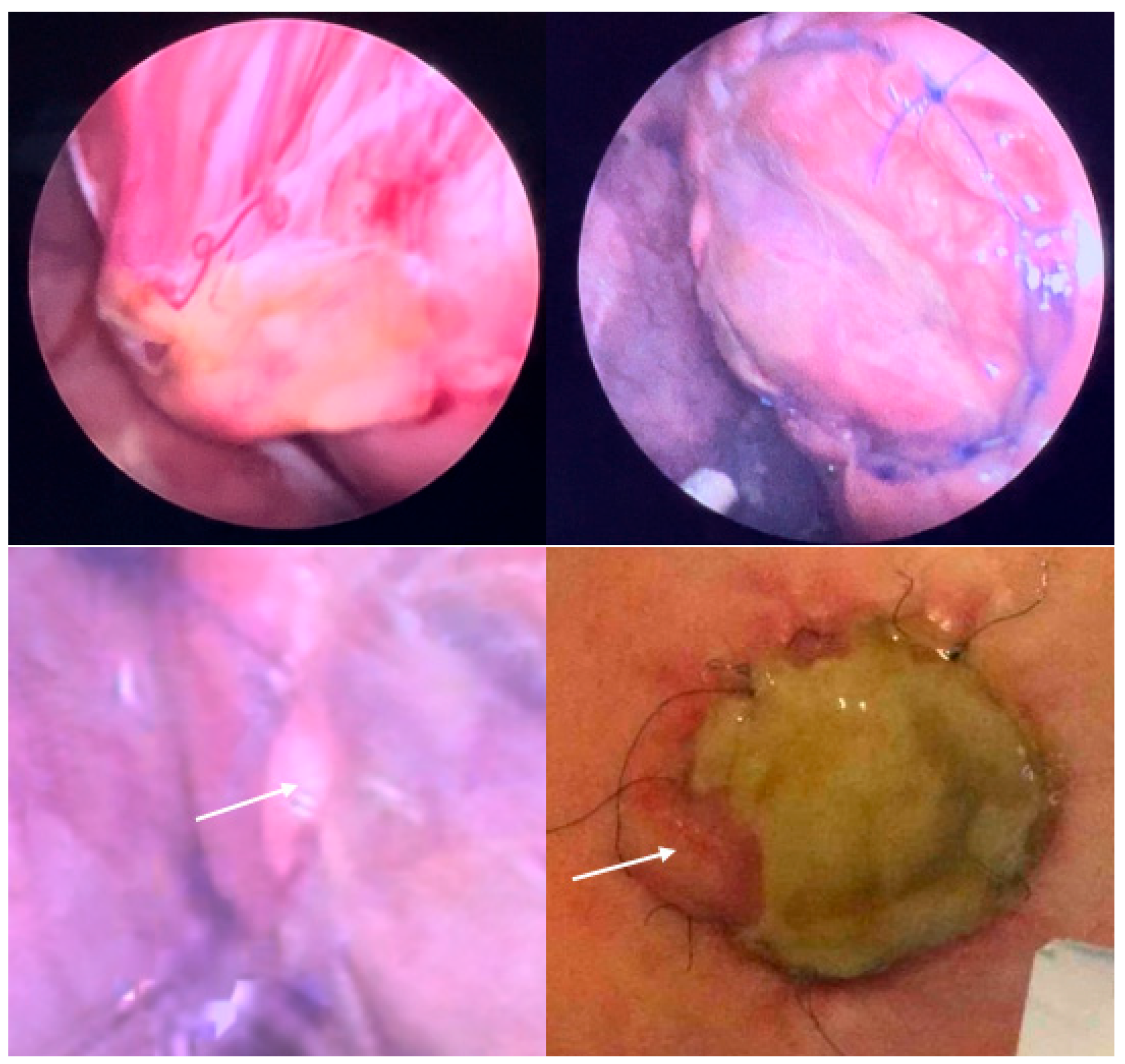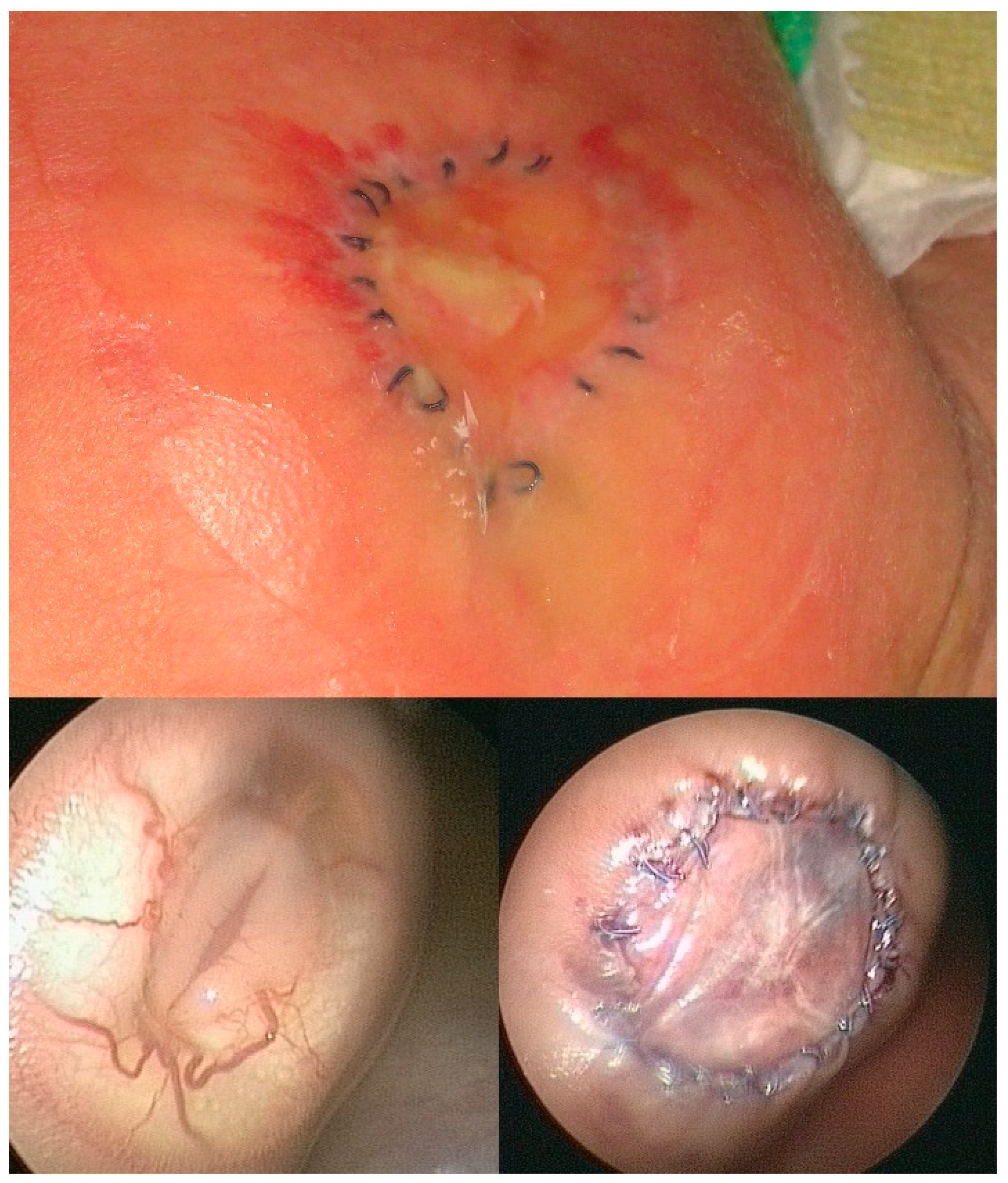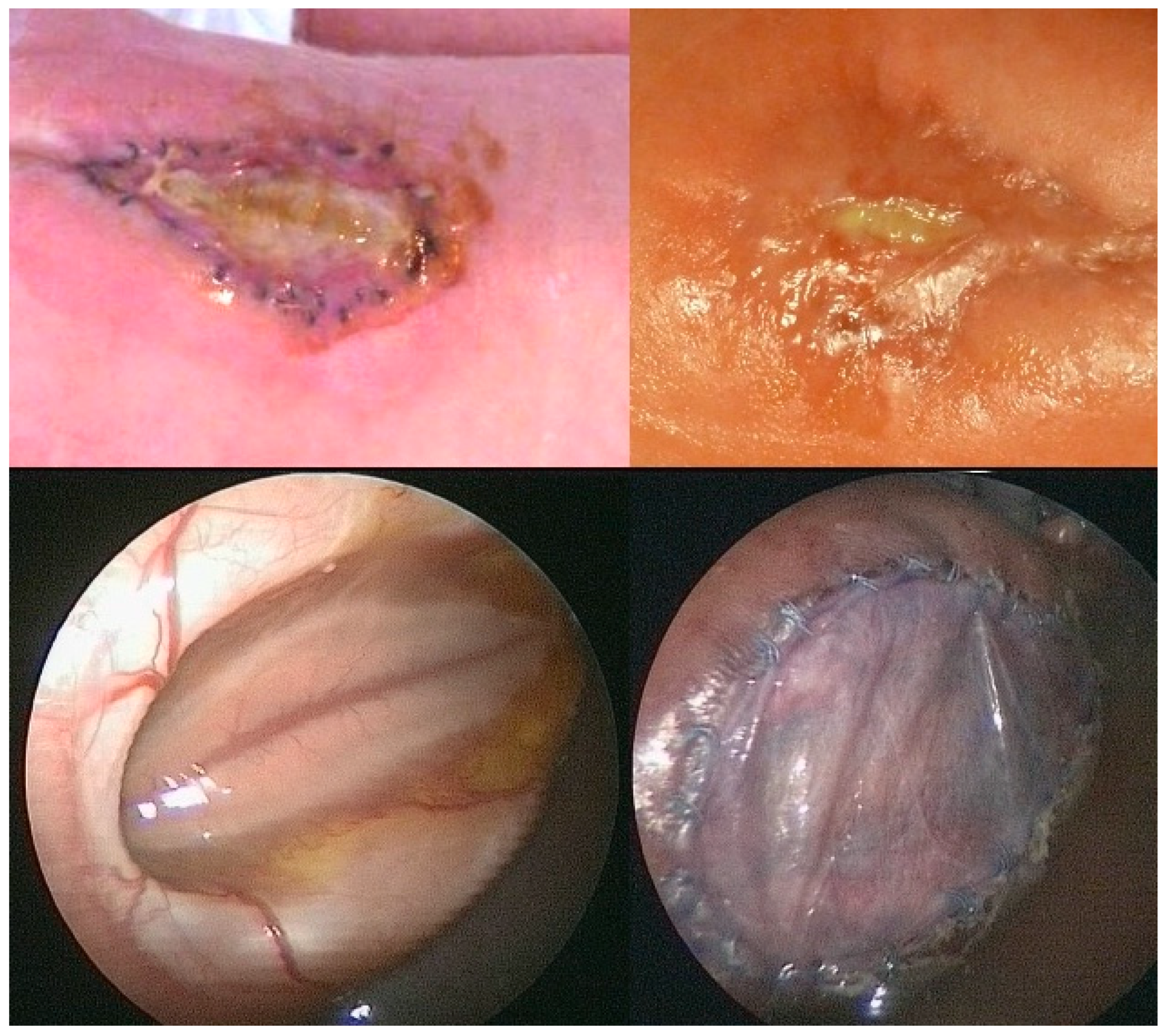 - Kohl, T.; Große Hartlage, M.G.; Kienitz, D.; Westphal, M.; Buller, T.; Achenbach, S.; Aryee, S.; Gembruch, U.; Brentrup, A. Percutaneous fetoscopic patch coverage of experimental lumbosacral full- thickness skin lesions in sheep—A minimally invasive technique aimed at minimizing maternal trauma from fetal surgery for myelomeningocele. Surg. Endosc. 2003, 17, 1218–1223. [Google Scholar] [CrossRef] [PubMed]