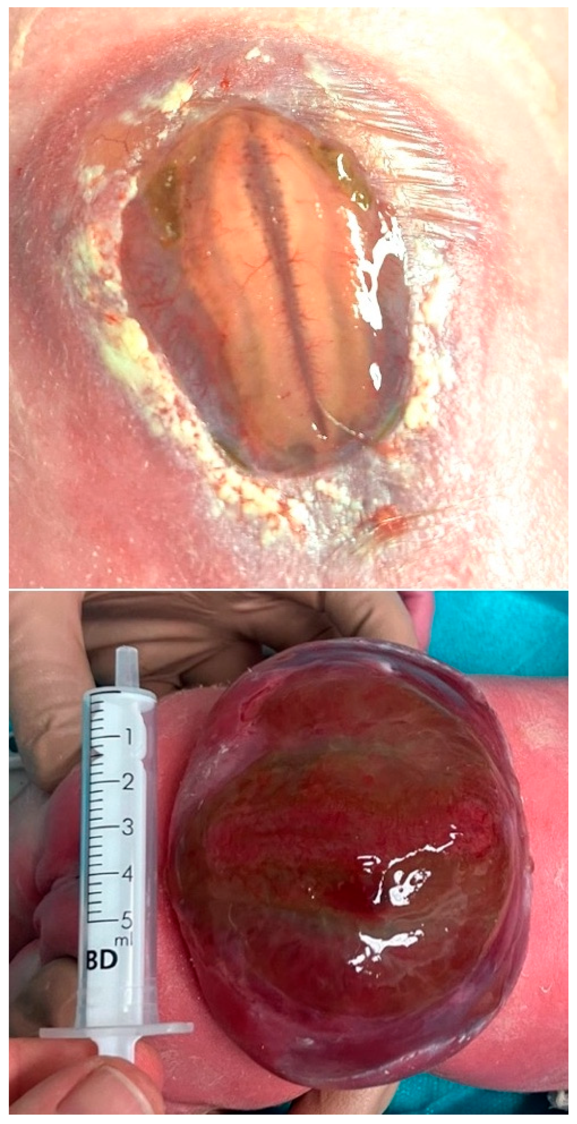 - Correia-Pinto, J.; Tavares, M.L.; Baptista, M.J.; Henriques-Coelho, T.; Estevão-Costa, J.; Flake, A.W.; Leite-Moreira, A.F. Meconium dependence of bowel damage in gastroschisis. J. Pediatr. Surg. 2002, 37, 31–35. [Google Scholar] [CrossRef][Green Version]