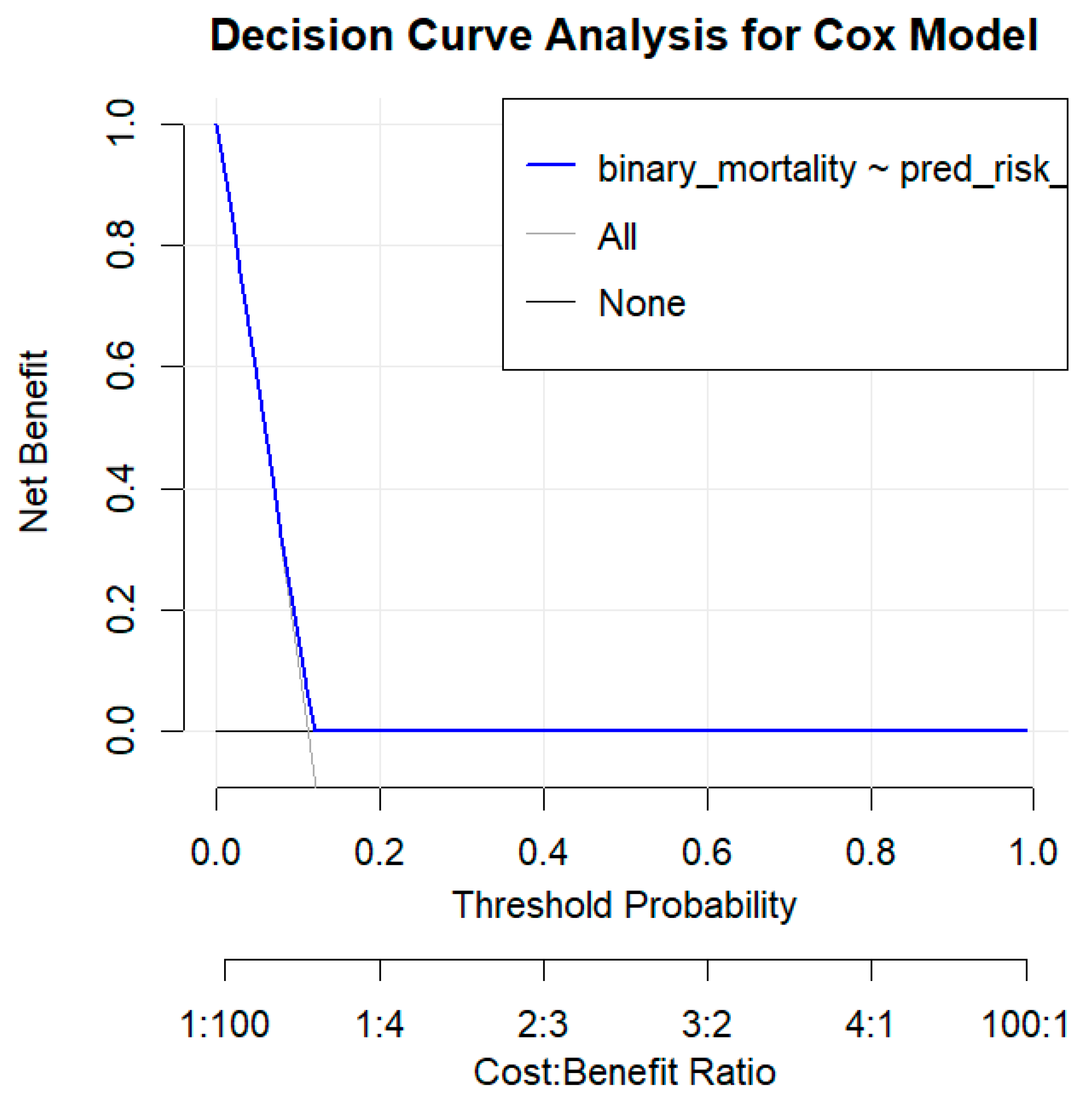 - Vickers, A.J.; Elkin, E.B. Decision curve analysis: A novel method for evaluating prediction models. Med. Decis. Mak. Int. J. Soc. Med. Decis. Mak. 2006, 26, 565–574. [Google Scholar] [CrossRef]
