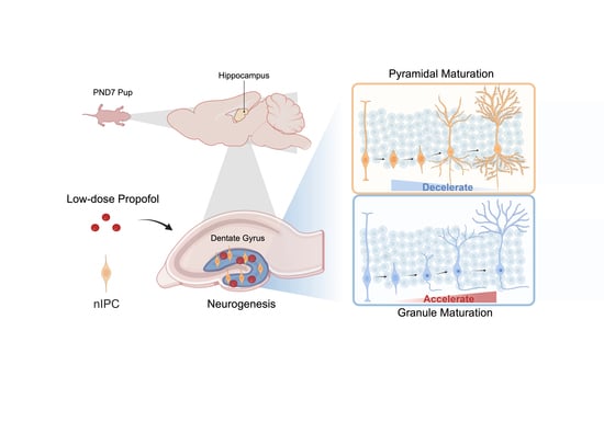 11. Huang, J.; Jing, S.; Chen, X.; Bao, X.; Du, Z.; Li, H.; Yang, T.; Fan, X. Propofol Administration during Early Postnatal Life Suppresses Hippocampal Neurogenesis. Mol. Neurobiol. 2016, 53, 1031–1044. [Google Scholar] [CrossRef] [PubMed]