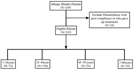 - Cheng, L.; Chen, J.; Fu, Q.; He, S.; Li, H.; Liu, Z.; Tan, G.; Tao, Z.; Wang, D.; Wen, W.; et al. Chinese Society of Allergy Guidelines for Diagnosis and Treatment of Allergic Rhinitis. Allergy Asthma Immunol. Res. 2018, 10, 300–353. [Google Scholar] [CrossRef]
