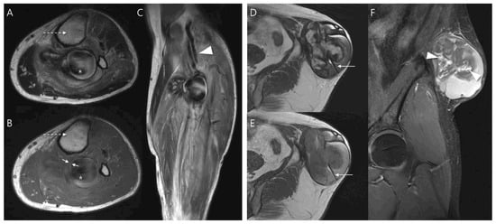 - Frassica, F.J.; Khanna, J.A.; McCarthy, E.F. The role of MR imaging in soft tissue tumor evaluation: Perspective of the orthopedic oncologist and musculoskeletal pathologist. Magn. Reson. Imaging Clin. N. Am. 2000, 8, 915–927. [Google Scholar] [CrossRef] [PubMed]