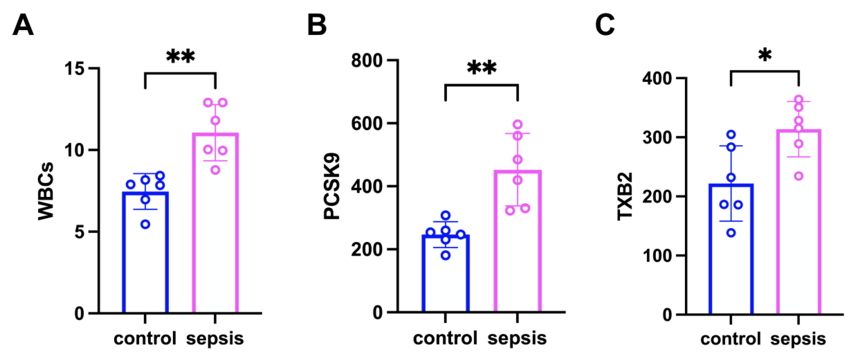 3.1. PCSK9 Enhances Platelet Aggregation in Sepsis Mice