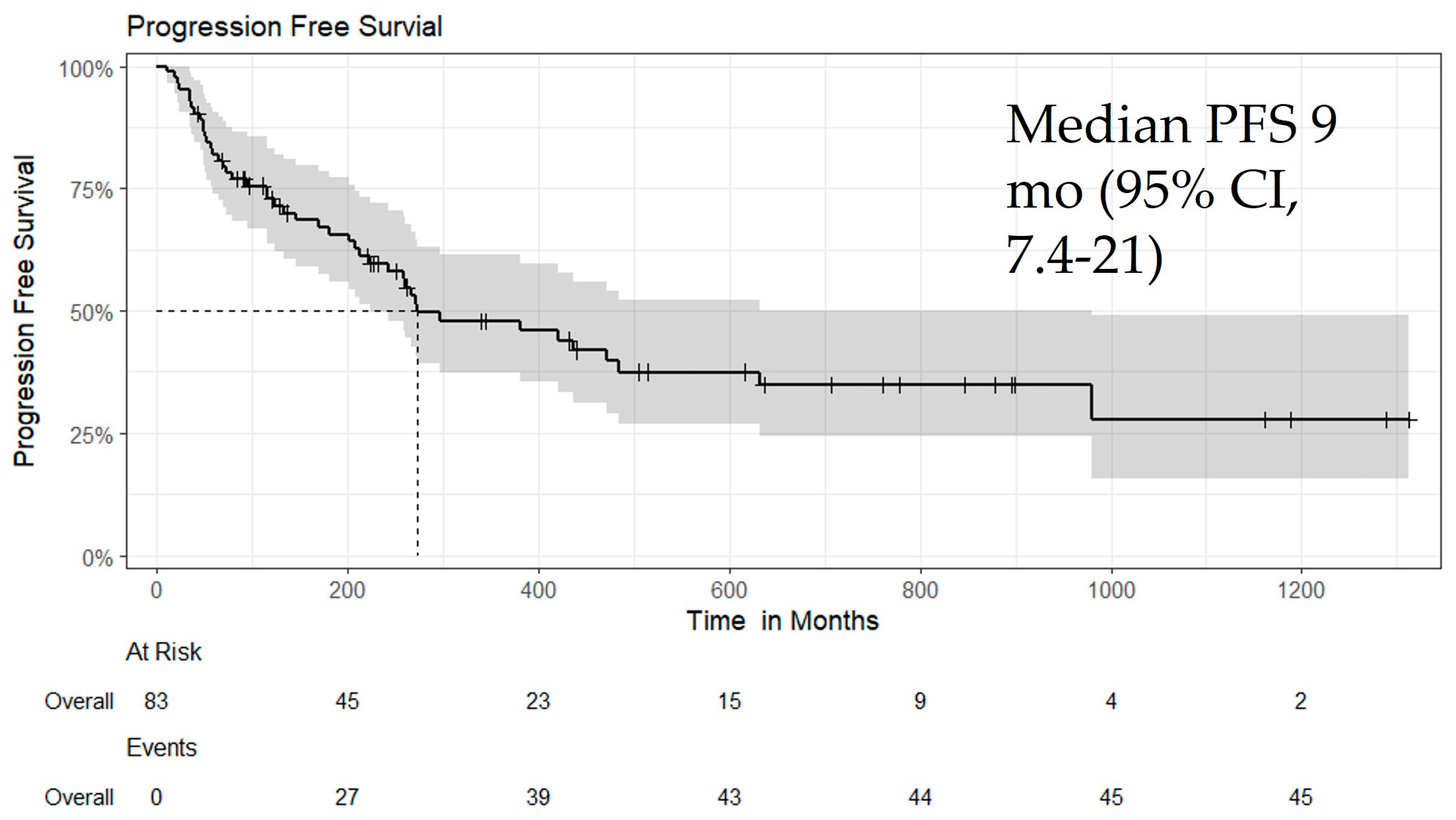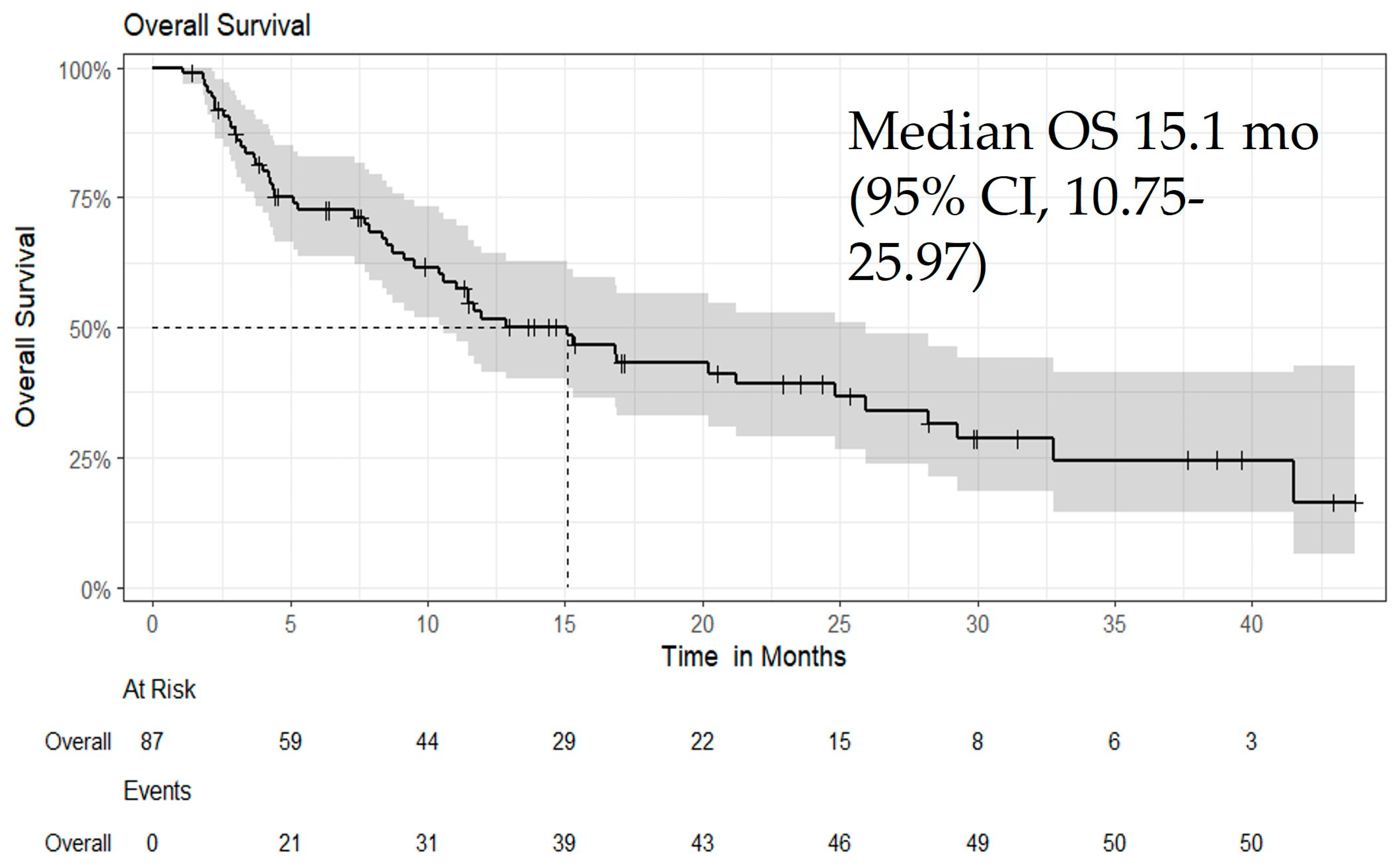| ECOG Performance Status | 0: 21 (24%); 1: 56 (64%); 2: 9 (10%); 3: 1 (1.1%) |