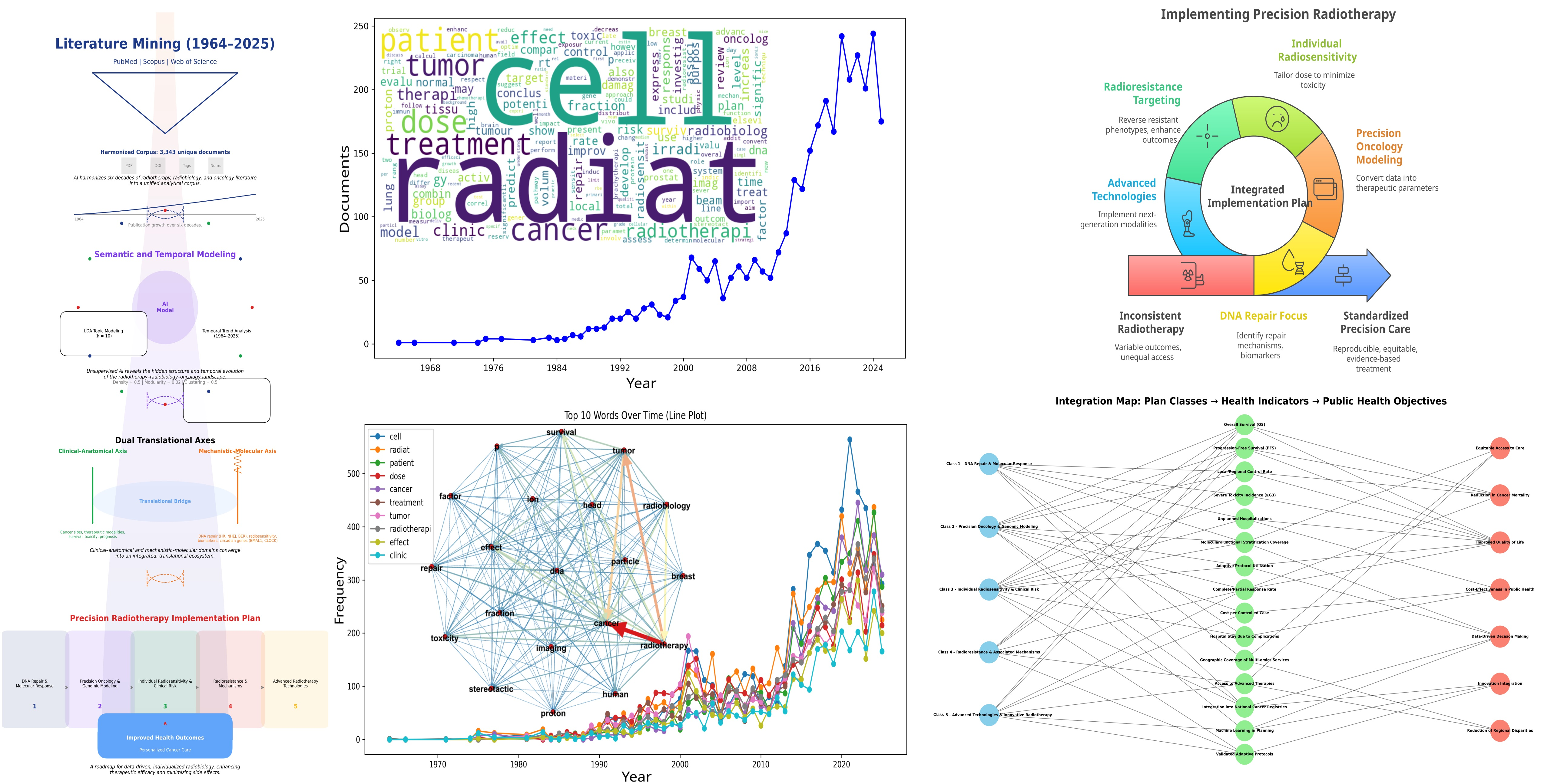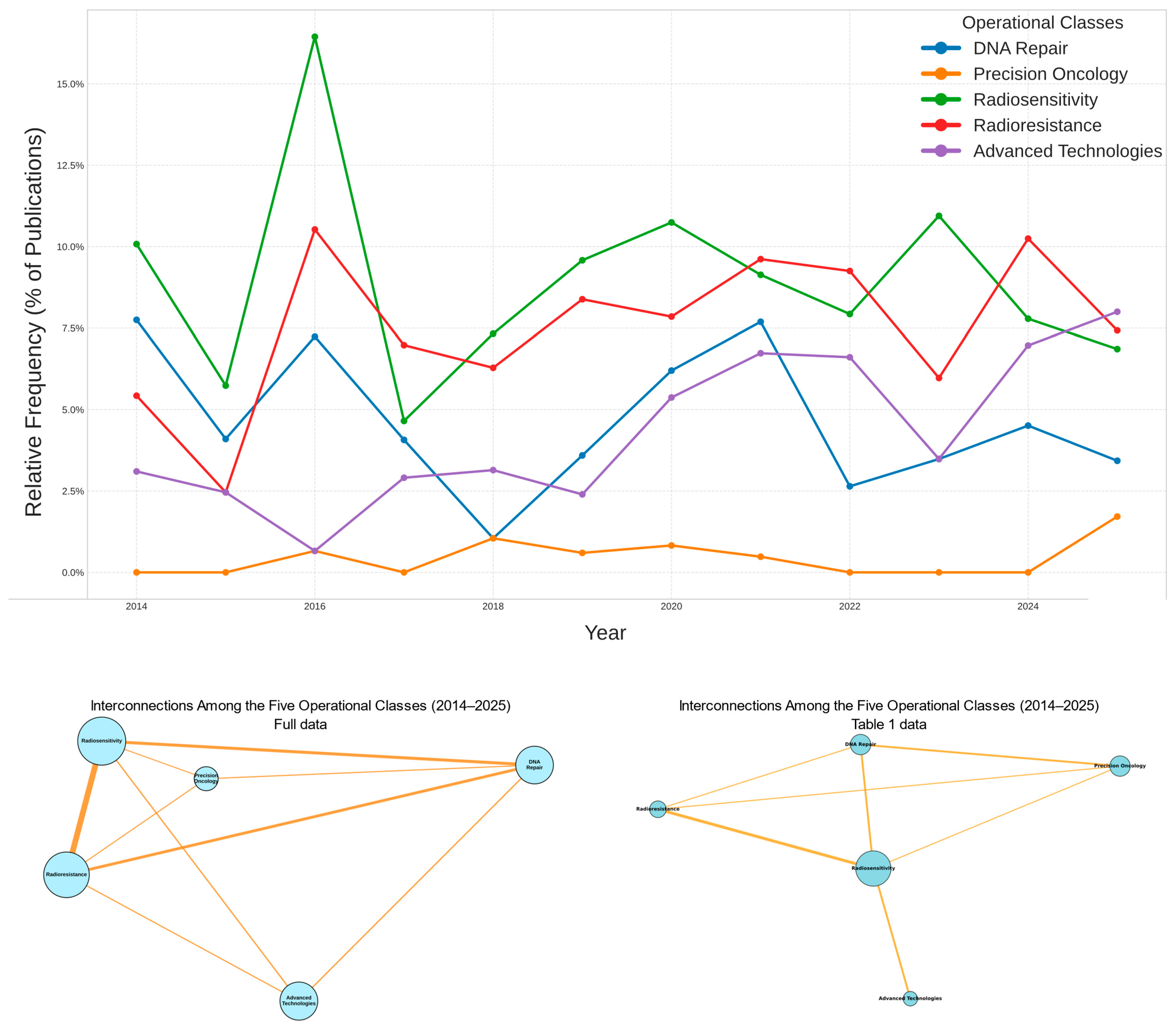 - Cancer and radiotherapy function as structuring axes of recent scientific production.