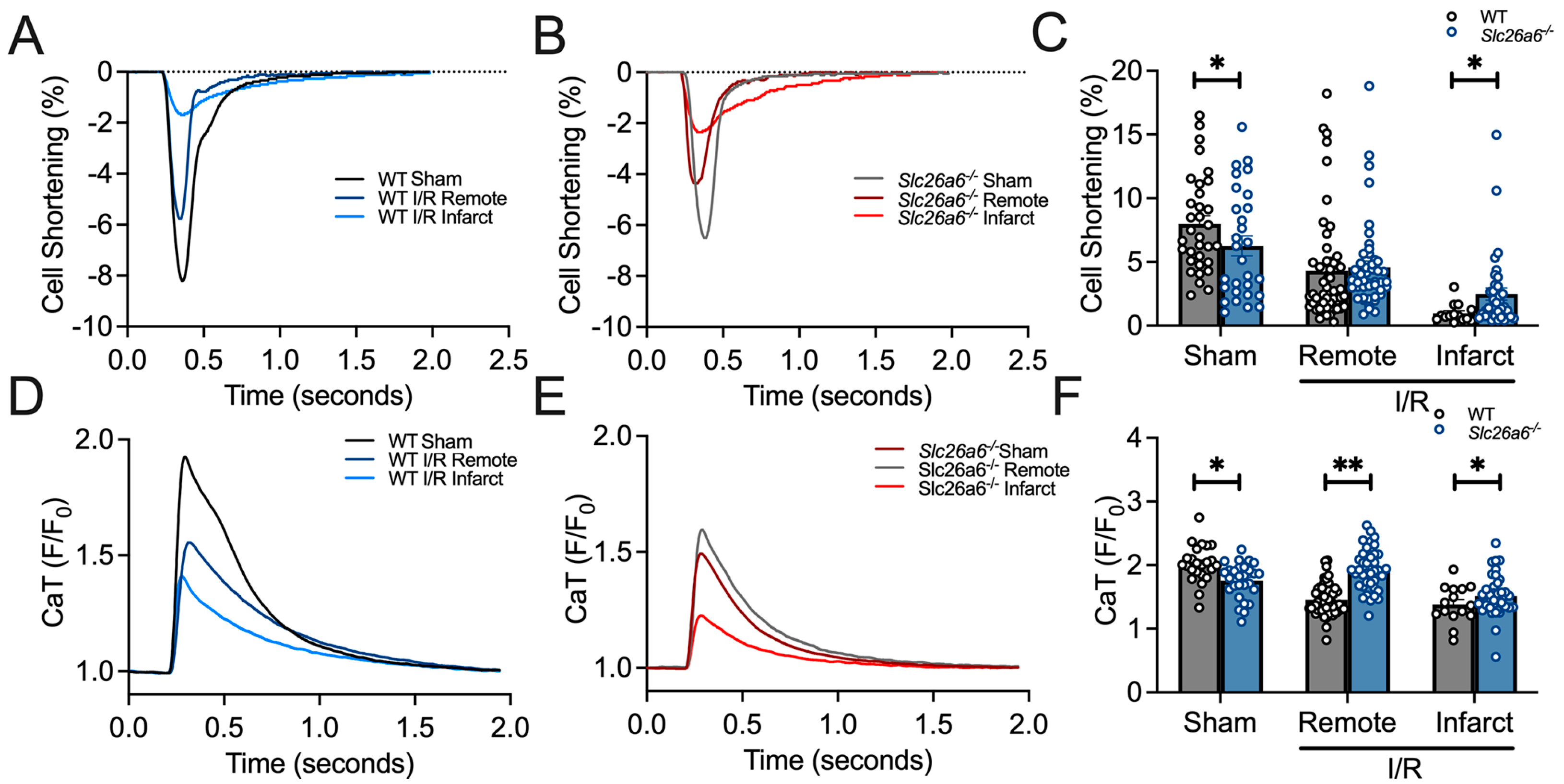 3.5. Improved Sarcomere Contractility in Slc26a6−/− Cardiomyocytes from I/R Mice