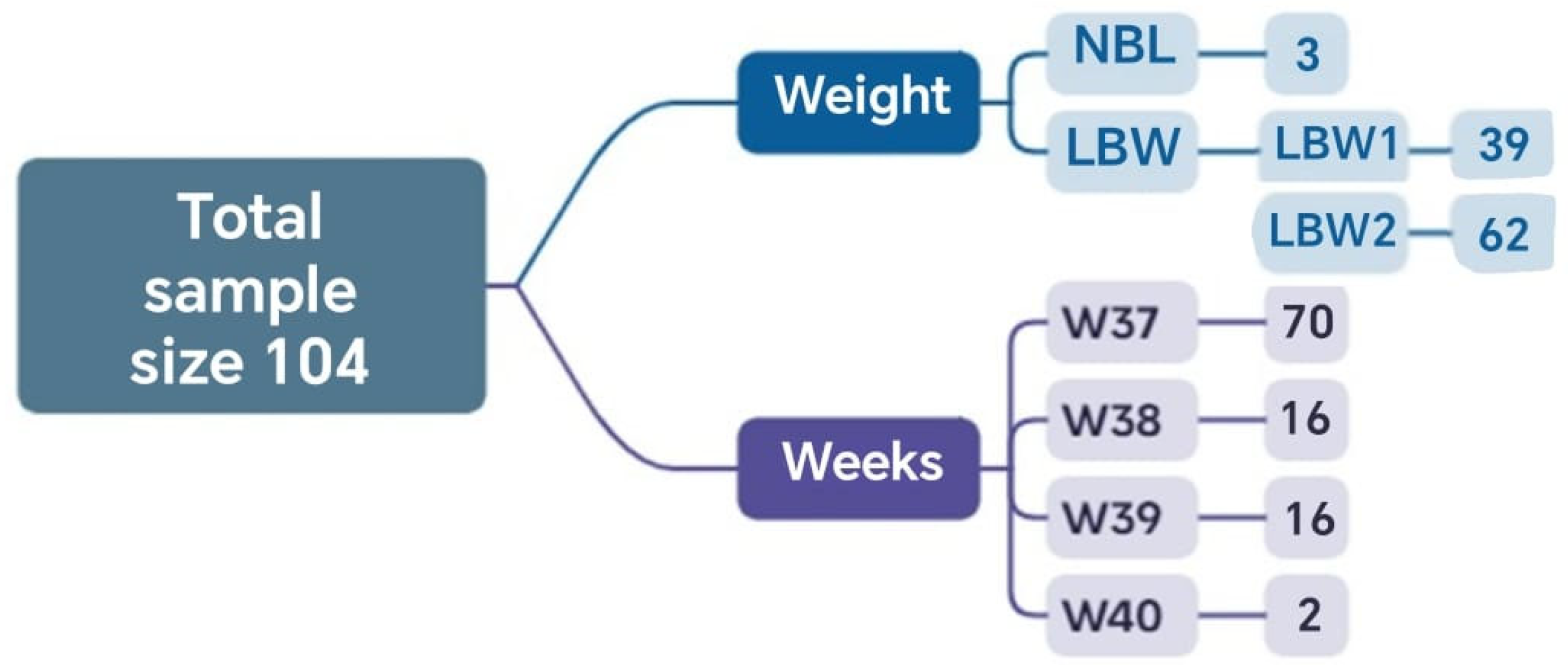| LBW2 | Neonates with low birth weight ranging from 2285 g to 2499 g. |