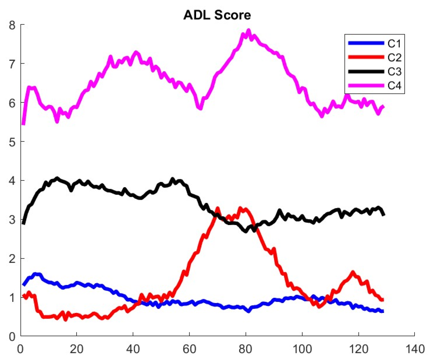 Figure 3 shows the different pattern of fatigue obtained with four clusters that are clearly separated according to the signature function. We will present next an additional criterion to choose the optimum number of clusters besides cluster separation that is related to the construction of stochastic mapping with other clinical scores.