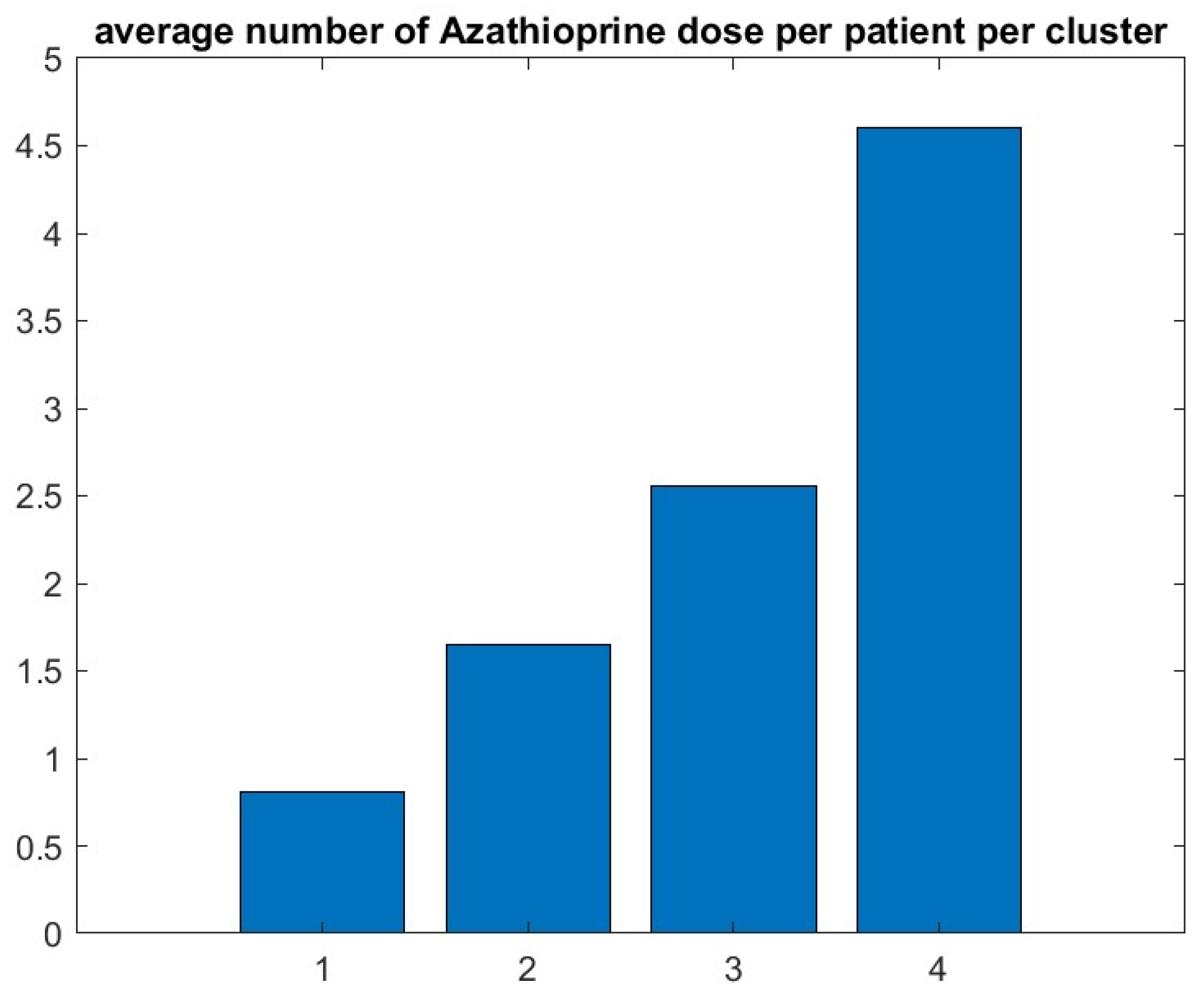 Figure A6 graphics confirm that the patients who do best have the lowest number of doses of azathioprine, and conversely, the treatment-resistant patients had the highest use of azathioprine.