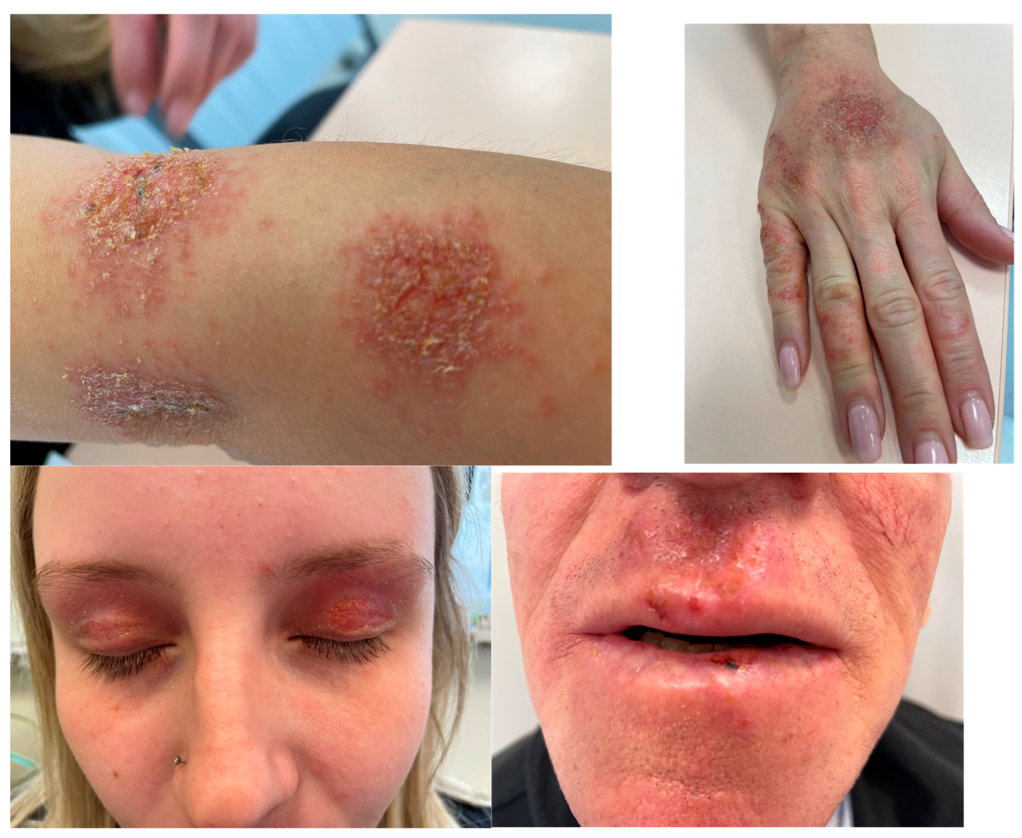 - Bakacs, T. Healing of Severe Herpes Zoster Ophthalmicus Within a Few Days: An Autobiographical Case Report. Cureus 2021, 13, e20303. [Google Scholar] [CrossRef]