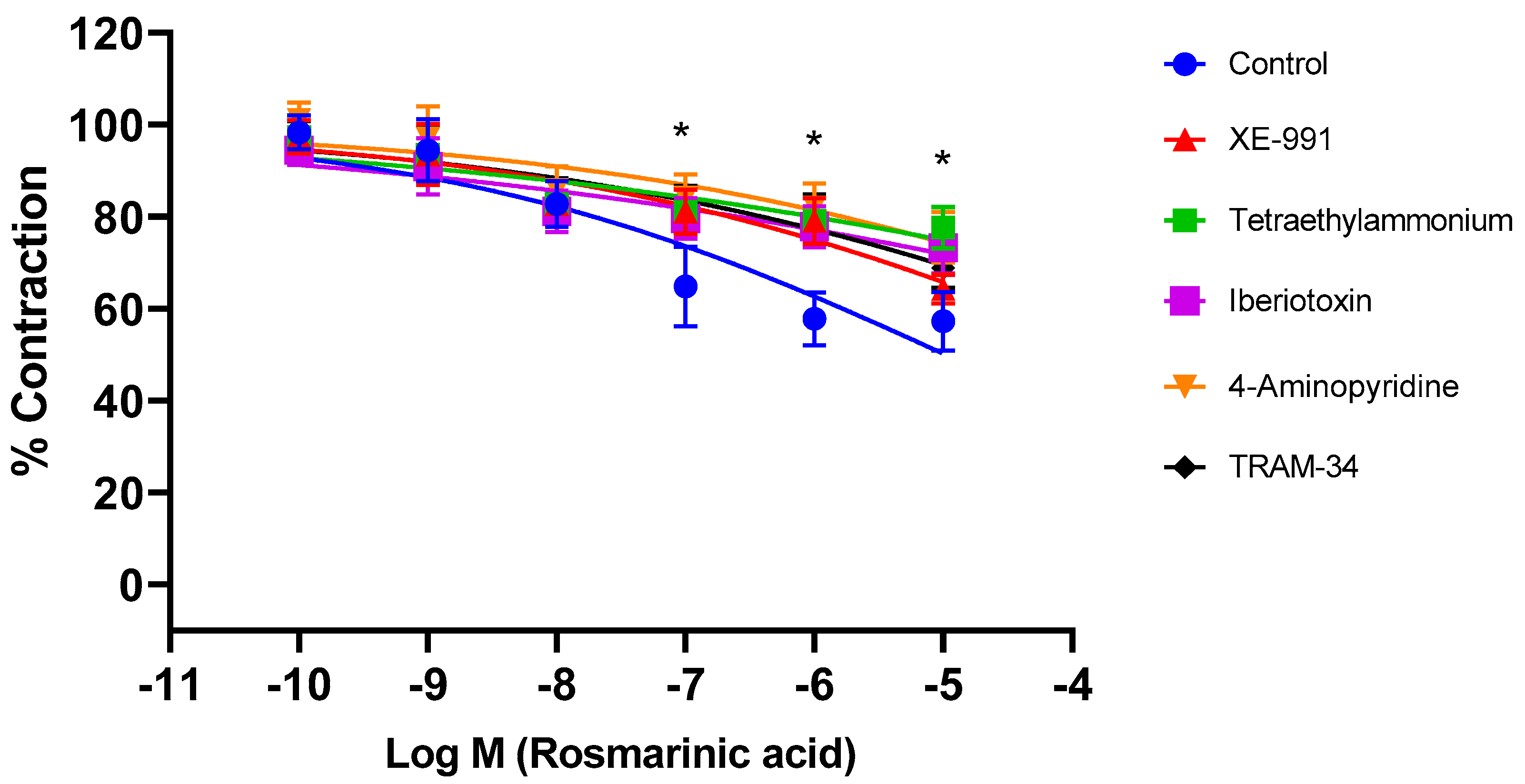 3.4. Contribution of Potassium Channel Activation to RA-Induced Vasorelaxation