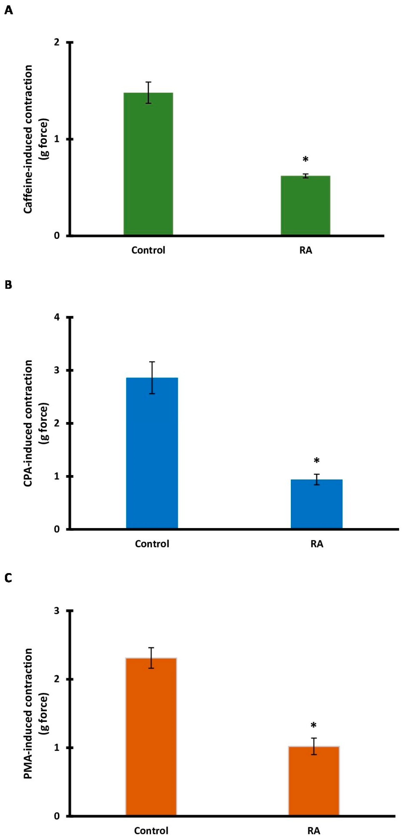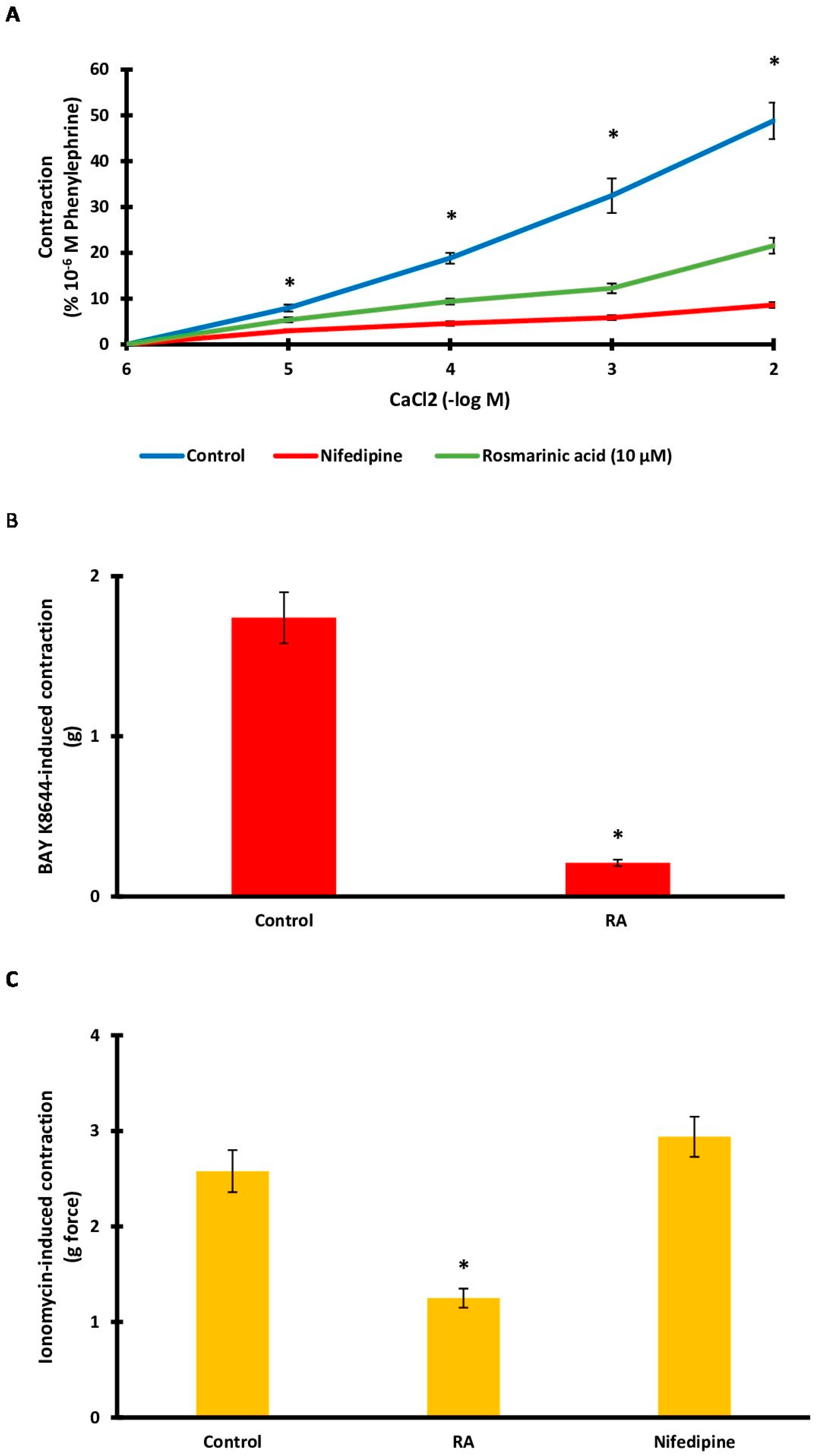 2.5. Investigating the Role of Intracellular Calcium Sources in RA-Induced Vasorelaxation