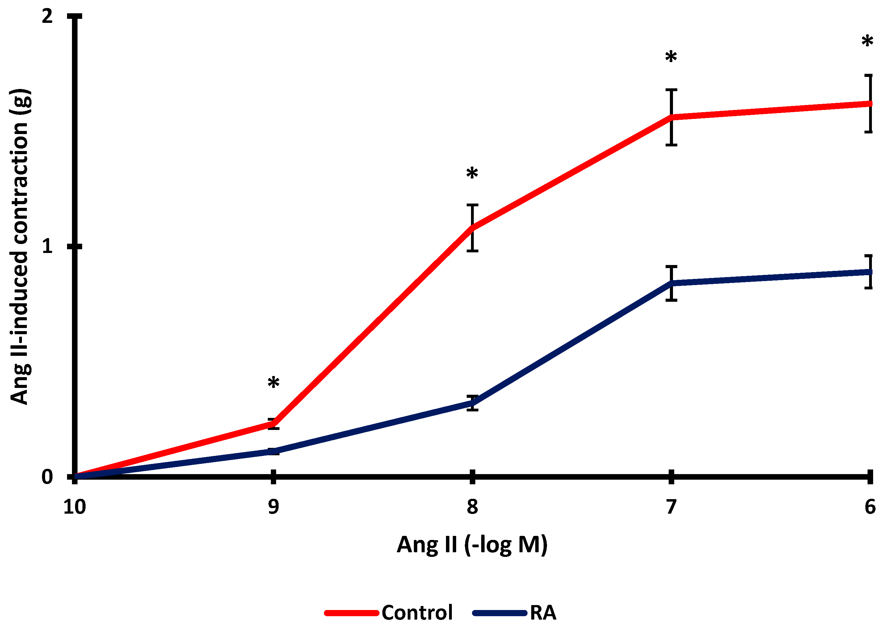 2.7. Investigation of the Effect of RA on Ang II-Induced Vasorelaxation
