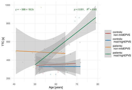 Figure 7 highlights a strong positive association between TTC and EPVS for patients with EPVS (slope = 18.2,