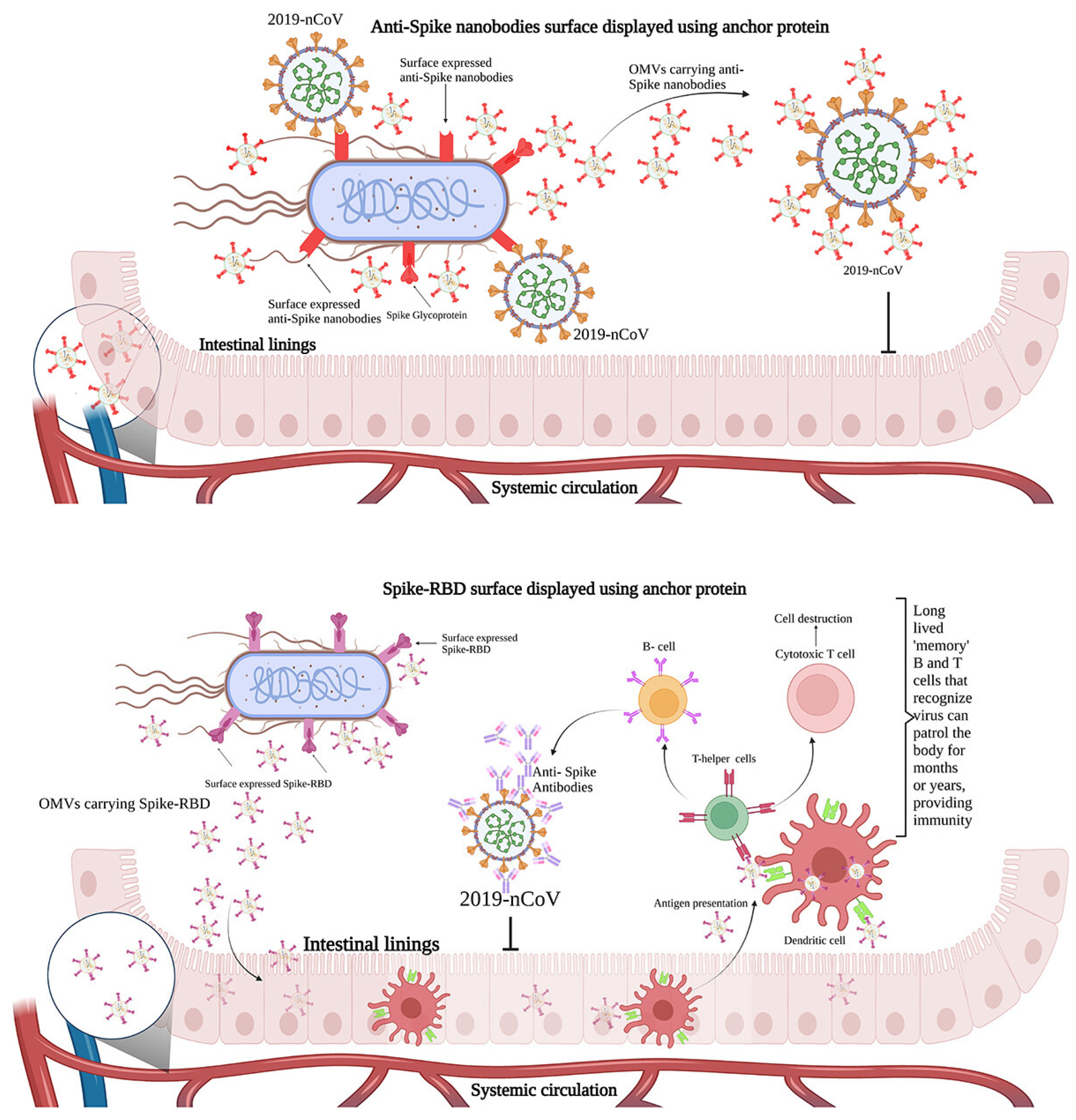 - Kamble, N.S.; Thomas, S.; Madaan, T.; Ehsani, N.; Sange, S.; Tucker, K.; Muhumure, A.; Kunkler, S.; Kotagiri, N. Engineered Bacteria as an Orally Administered Anti-Viral Treatment and Immunization System. Gut Microbes 2025, 17, 2500056. [Google Scholar] [CrossRef] [PubMed]
