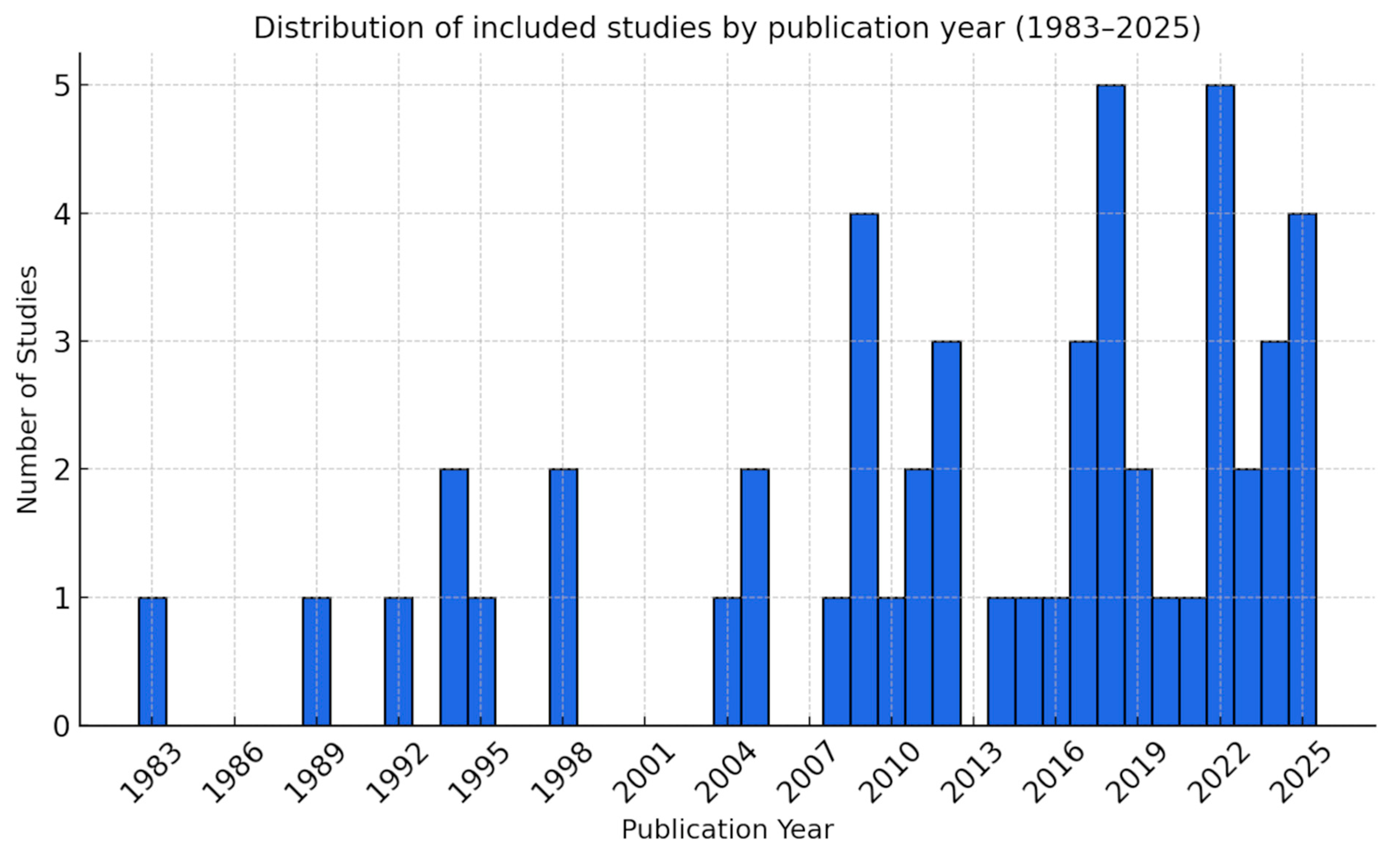 - No date restrictions were applied; all available literature was included.