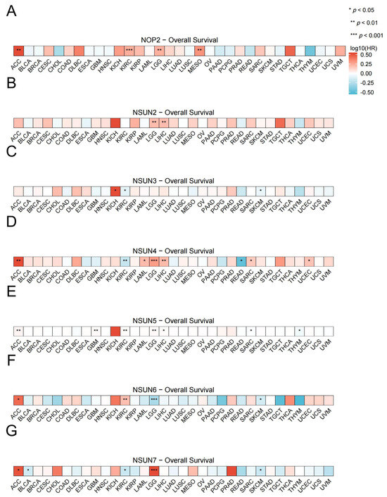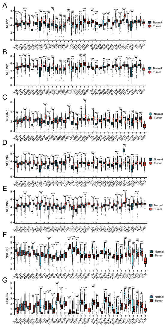 - Cui, J.; Ruan, S.; Zhang, Z.; Wang, H.; Yan, Q.; Chen, Y.; Yang, J.; Fang, J.; Wu, Q.; Chen, S.; et al. Pan-cancer analysis of the prognosis and immune infiltration of NSUN7 and its potential function in renal clear cell carcinoma. Discov. Oncol. 2025, 16, 345. [Google Scholar] [CrossRef] [PubMed]