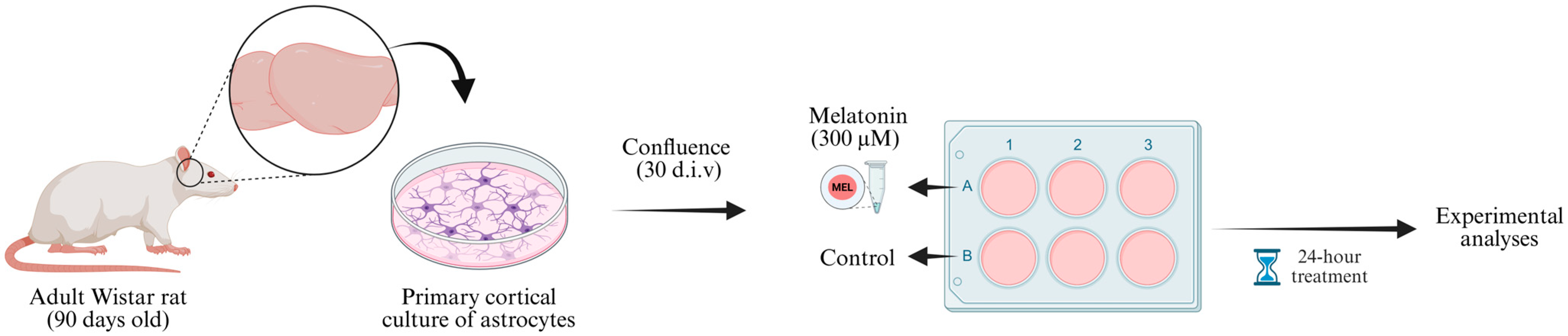 2.2. Primary Culture of Astrocytes and Melatonin Treatment
