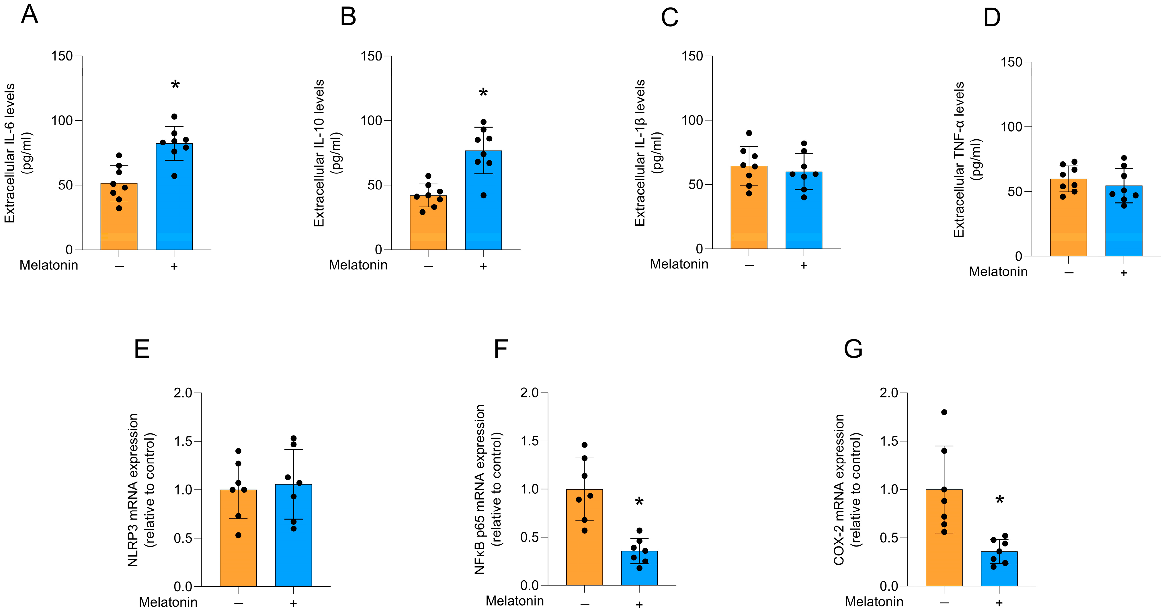 3.3. Effects of Melatonin on the Inflammatory Profile